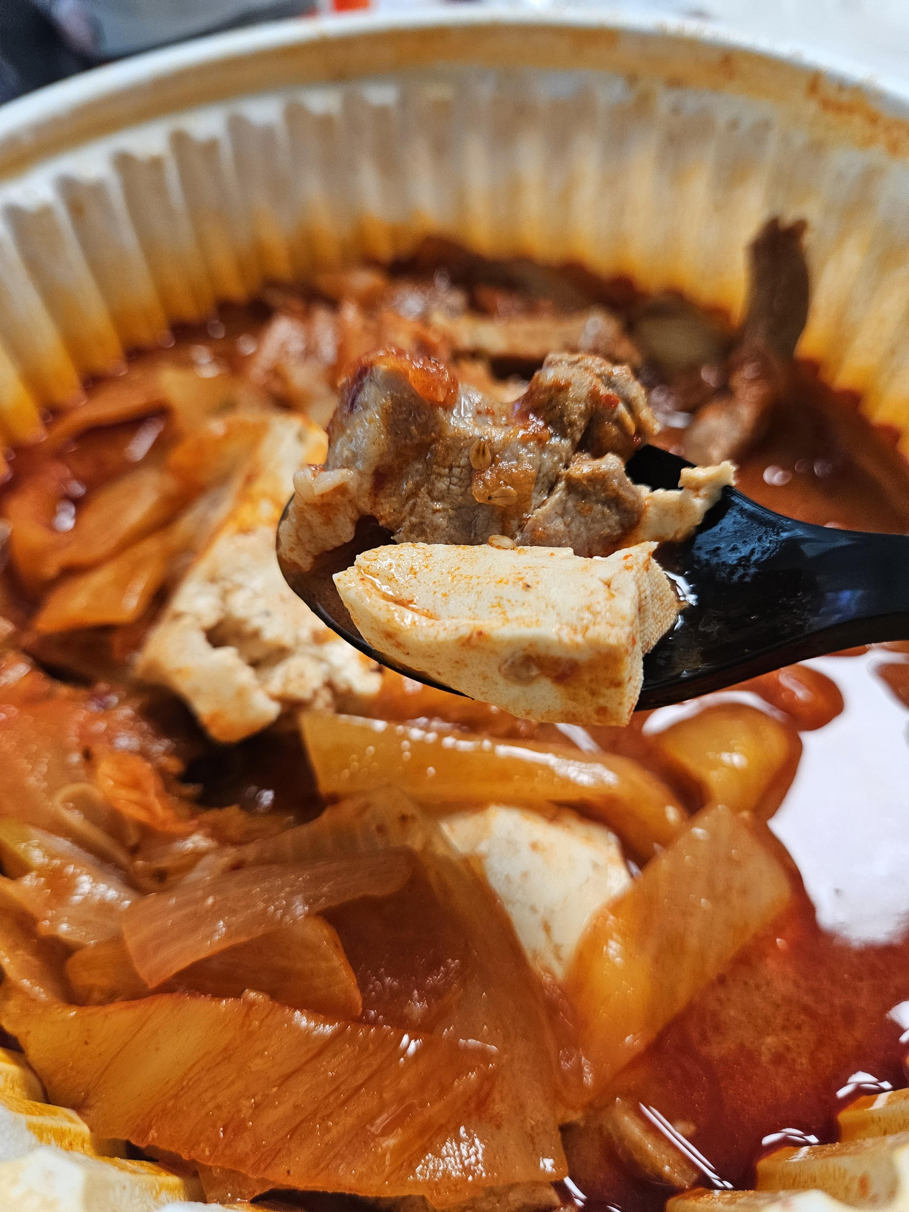 얼른 풀어서 맛보니 내가 원했던 매운맛~ 맵부심 있는 나도 입술 주변이 부풀어 오르지만 ㅋㅋ 맛있게 먹을 수 있는 수준인데 친구는 복통?을 호소하며 맵다고 헥헥거리면서도 맛있다고 열심히 먹더라 ㅎㅎ