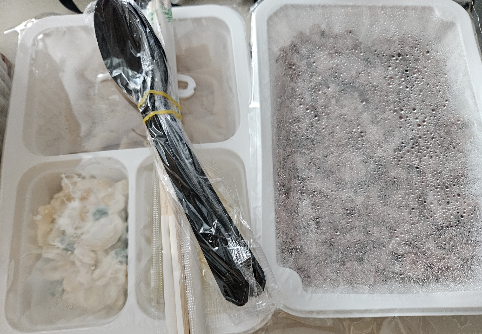 주문하고 한 30분 만에 도착했나? 따뜻한 온기 뿜뿜 품기며 대용량 용기에 담겨 배송됐는데