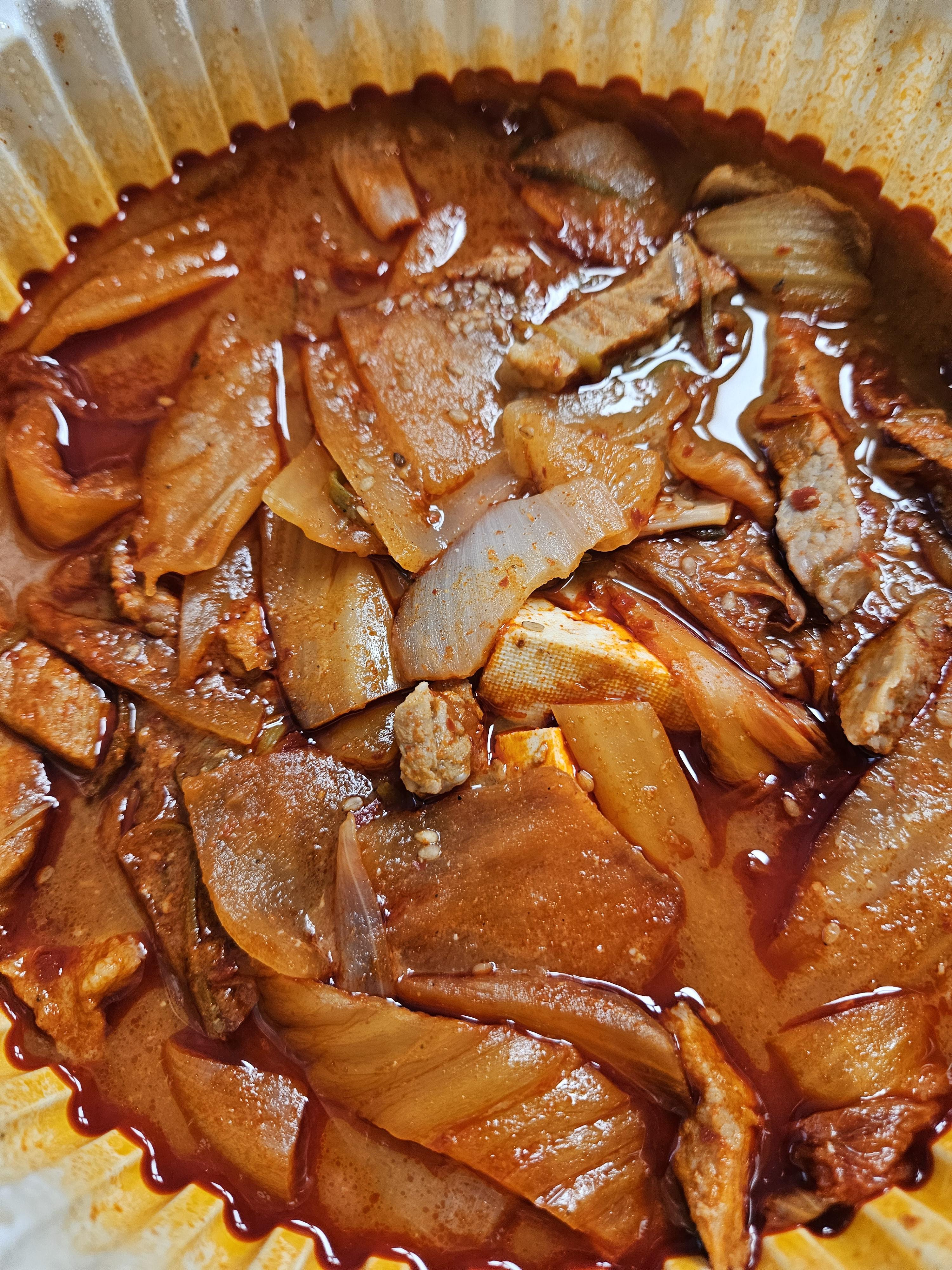 여기에 부드럽고 두툼한 두부, 양파, 국물까지 뭐 하나 빠지는 게 없고 고기도 잡내 없고 살코기 위주에 부드럽게 조리했는데 간도 잘 맞아서 아주 맛있게 먹었다.