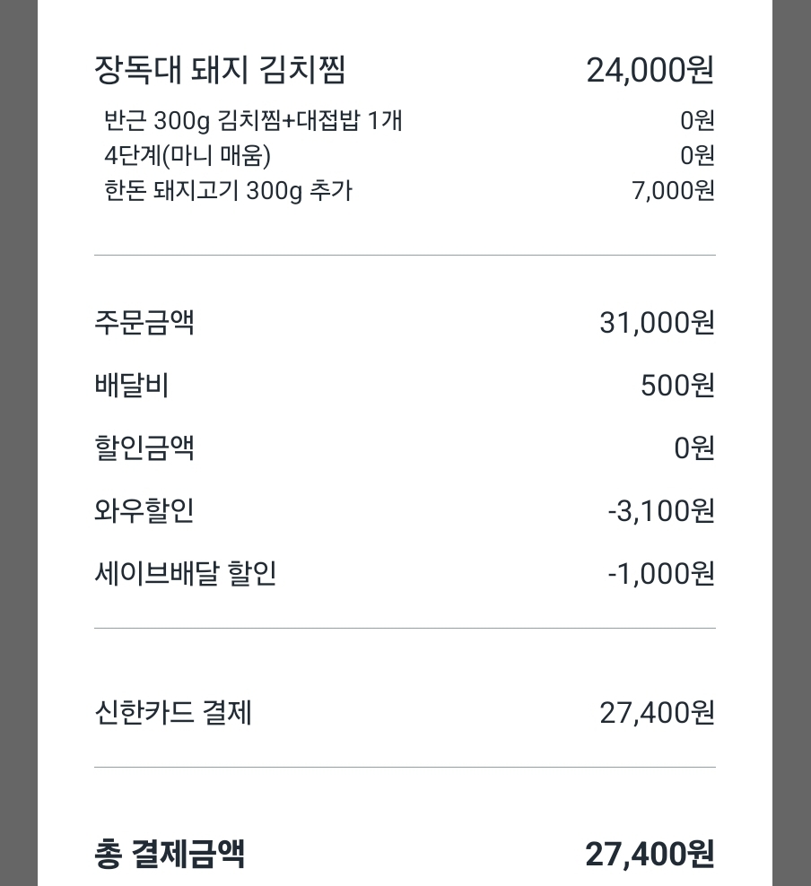 고기 300g도 이미 충분했지만 300g 더 추가해서 둘이 한 근 ㅋㅋㅋㅋ 아주 풍족하게 먹기 위해 포장 카트에 담았는데 배송비 포함 가격이 27,4였다.