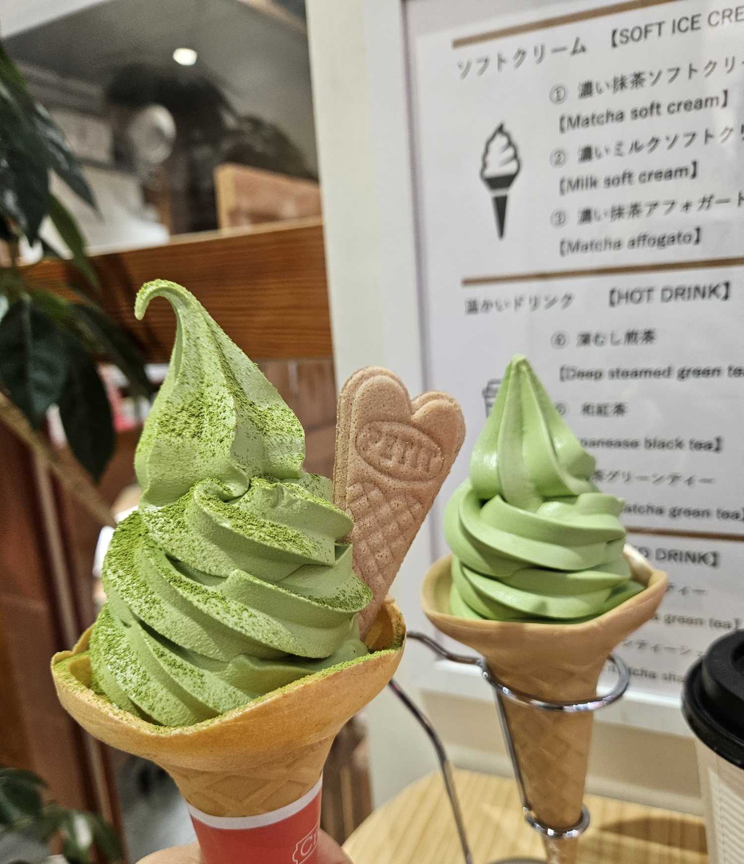 소프트 아이스크림은 말차와 밀크 두 가지고 혼합은 없다고 한다. 말차 녹차 디저트 매니아니까 말차 아이스크림(400엔)으로 선택.