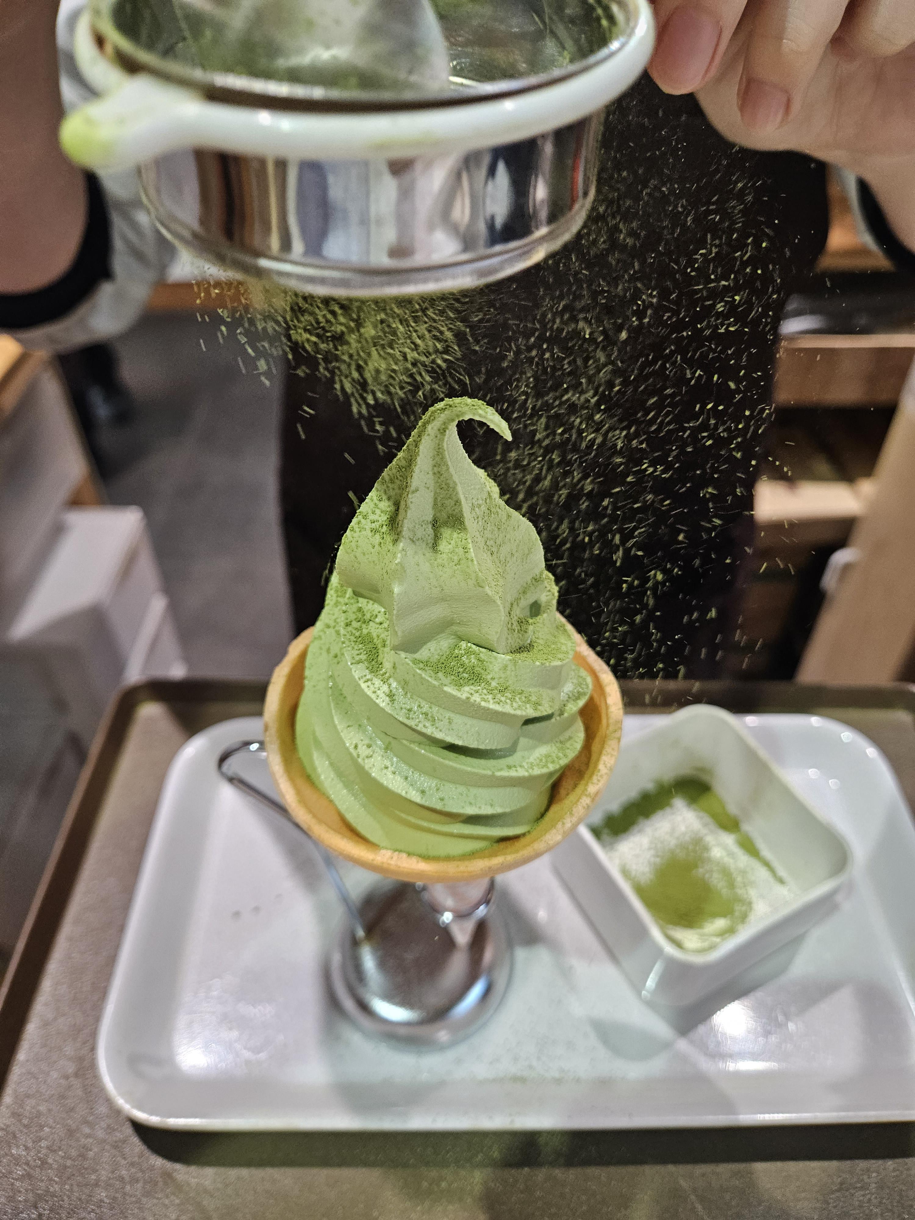 매장 밖에서 먹지만 나름 말차 파우더에 쿠키까지 얹어주는 섬세한 일본 말차 카페이자 아이스크림 맛집 우지코엔 교토 우지산 말차 👍