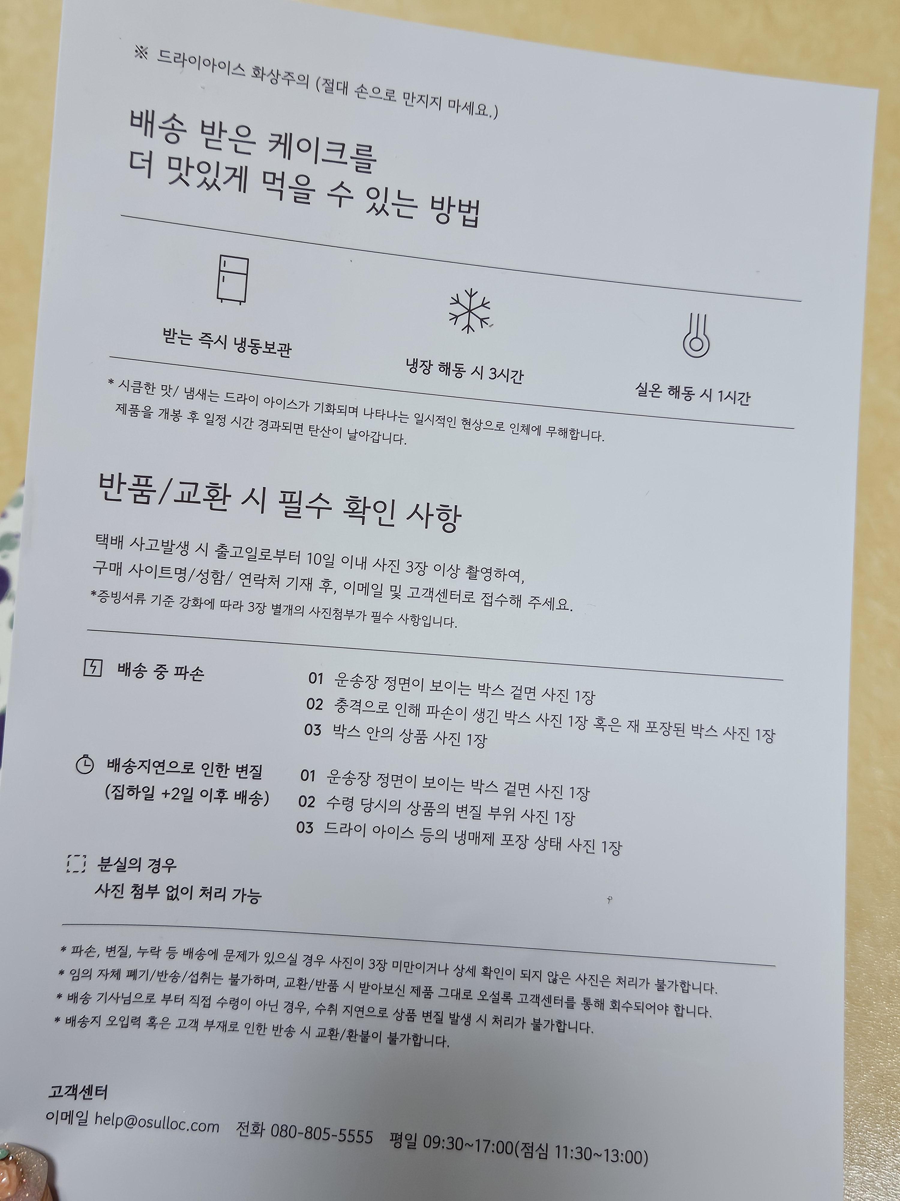 냉동보관된 상태로 배송되기 때문에 요즘도 아직 겨울날씨라 수령하고 언박싱했는데도 크림부분은 얼어있었고 빵 부분도 꽤나 단단한 편이었음.
