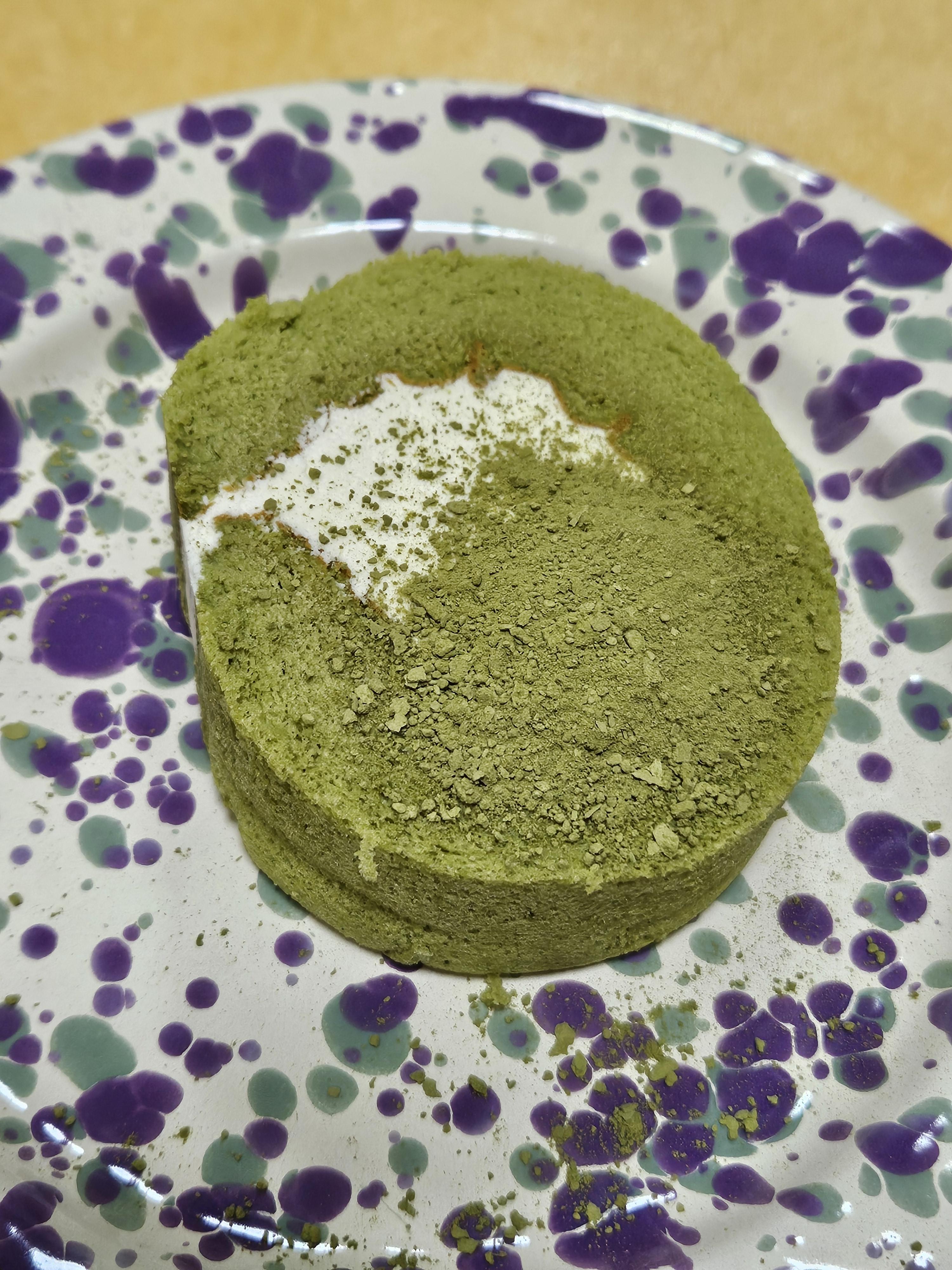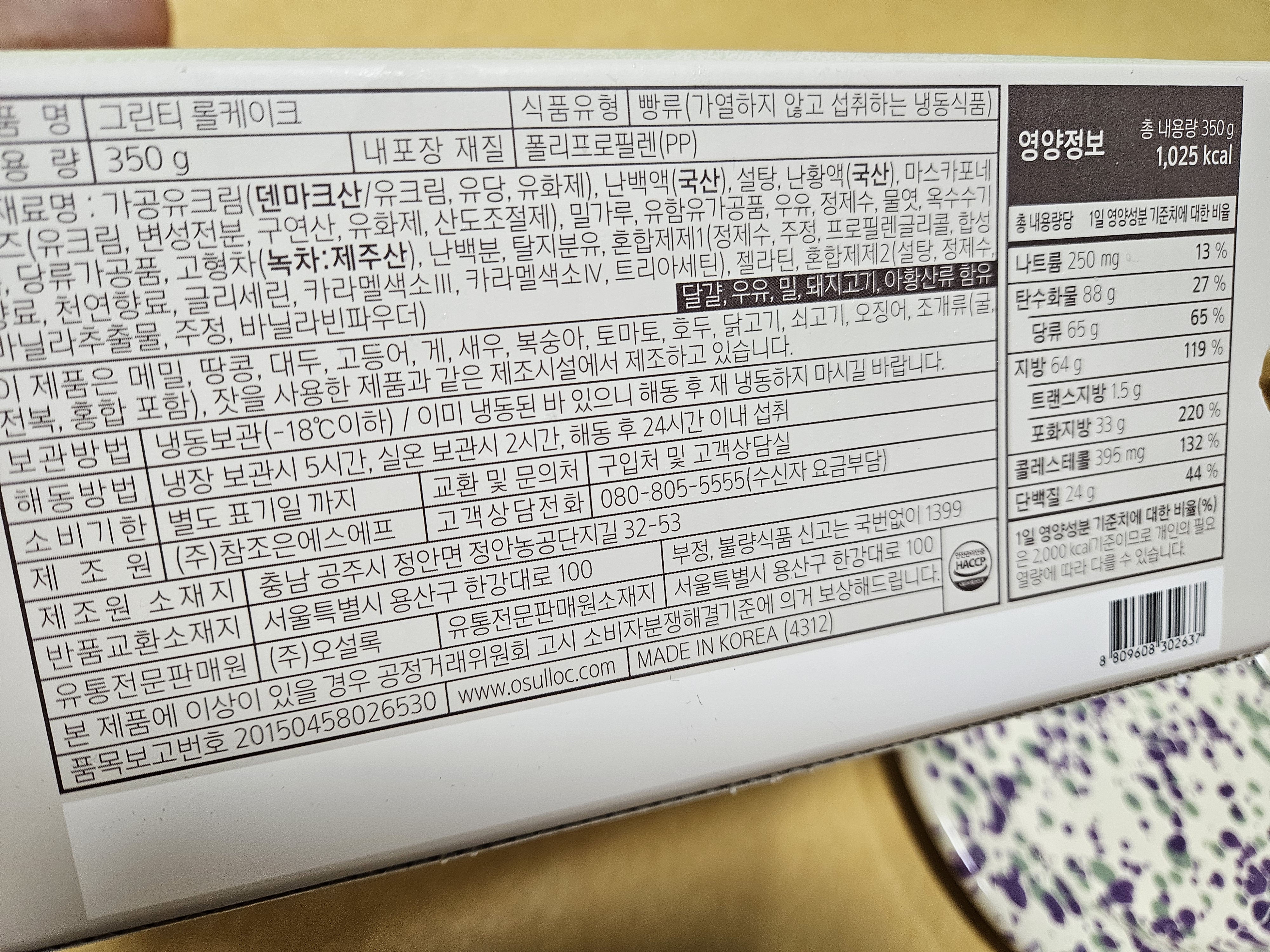아주 크지 않은 아담한 사이즈 중량은 350g 칼로리는 무려 1,025Kcal 후덜덜하네 ㅎㅎ 녹차가루는 0.86% 함유됐다는데 나한텐 간에 기별도 안 가는 양이라 냉동실에 말차 가루 쟁여두고 있는데 ㅎㅎ 디저트 먹을 때 수시로 추가해 먹으면 맛이 배가 된다.