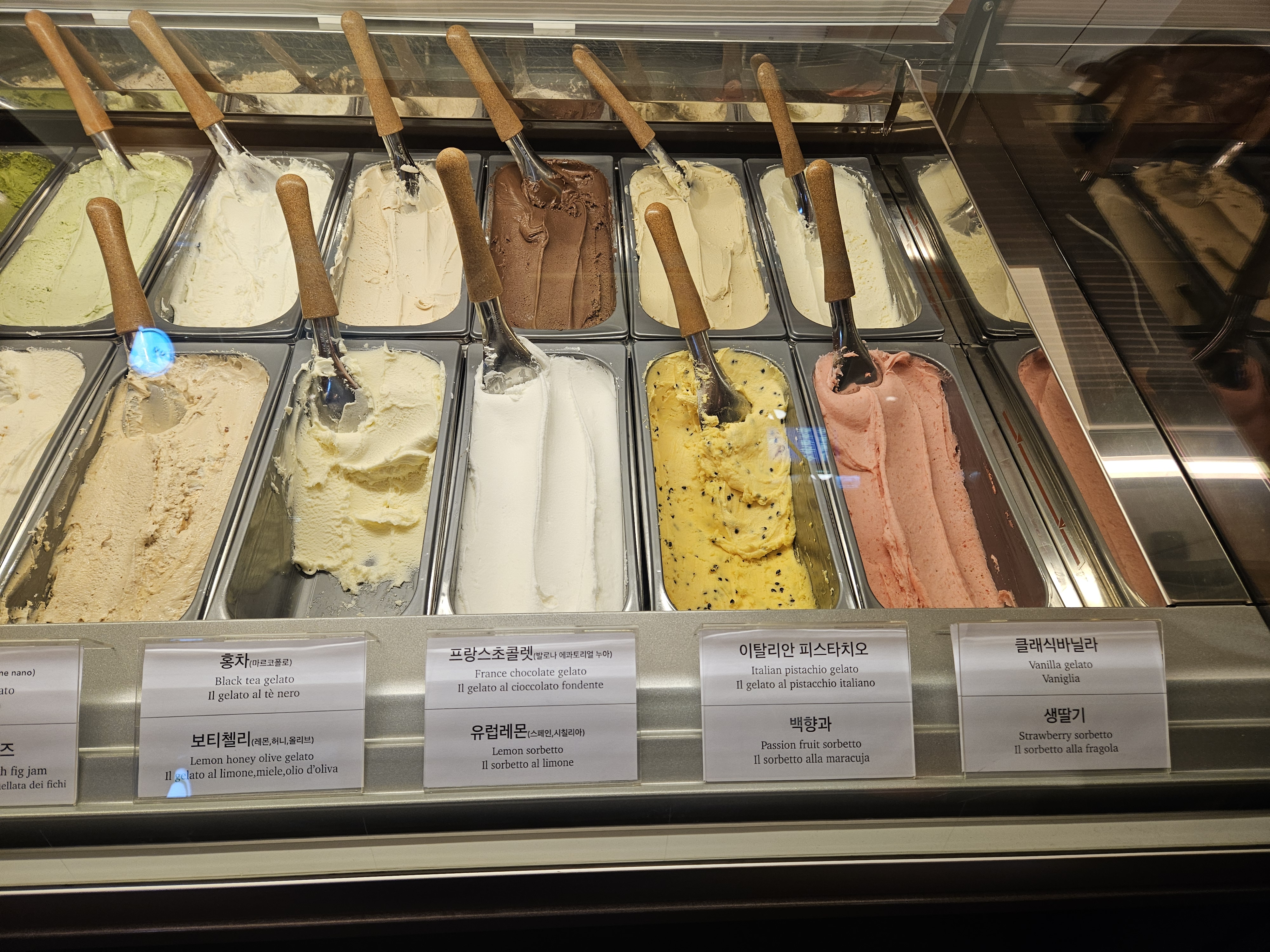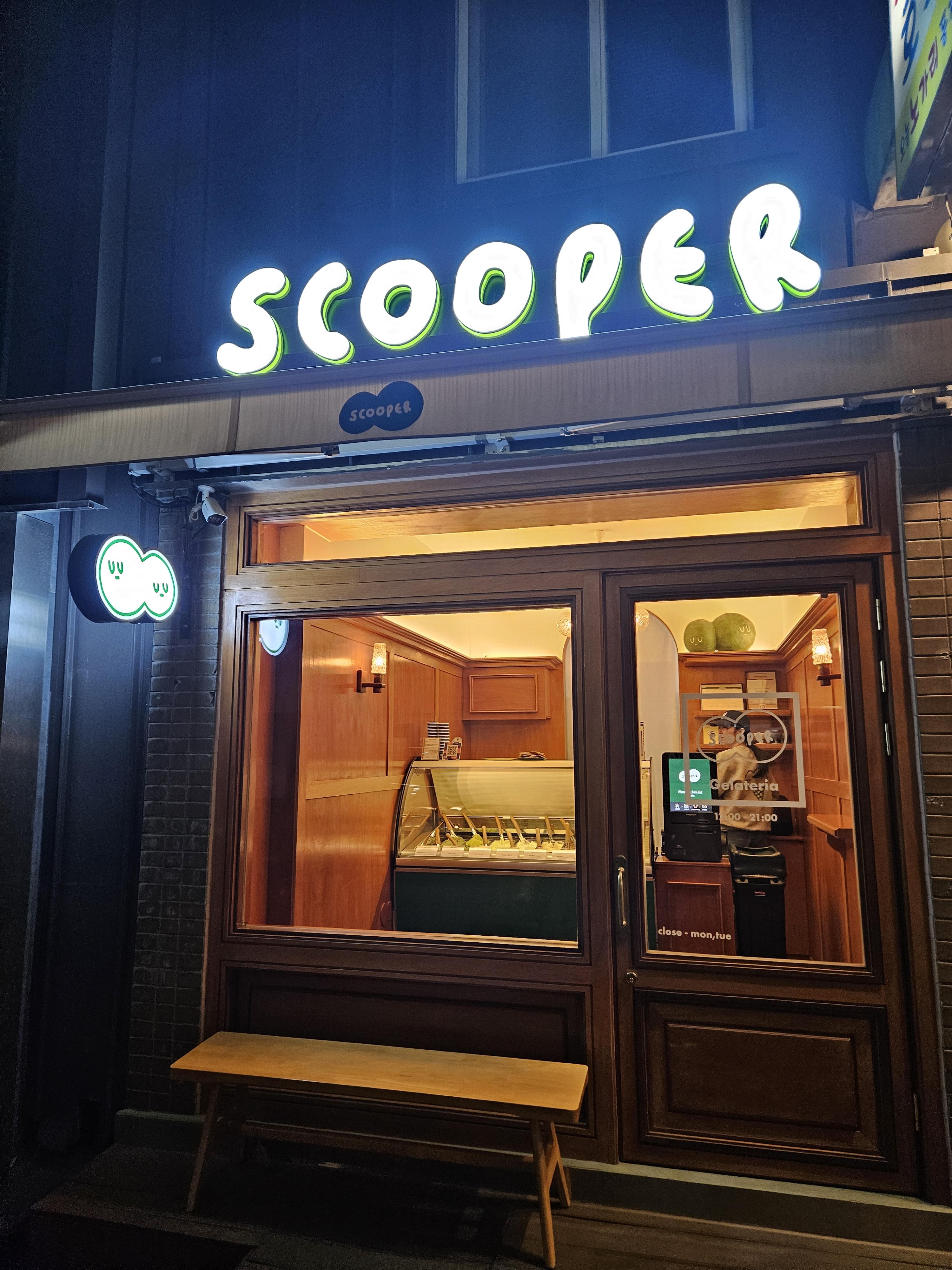 저녁 식사로 화로구이에 소주 한 병 나눠먹고 나오니 술 한 잔 마시면 아이스크림이 생각난다는 친구와 원래 디저트 좋아하는 나한테 딱 적합한 젤라또였다.