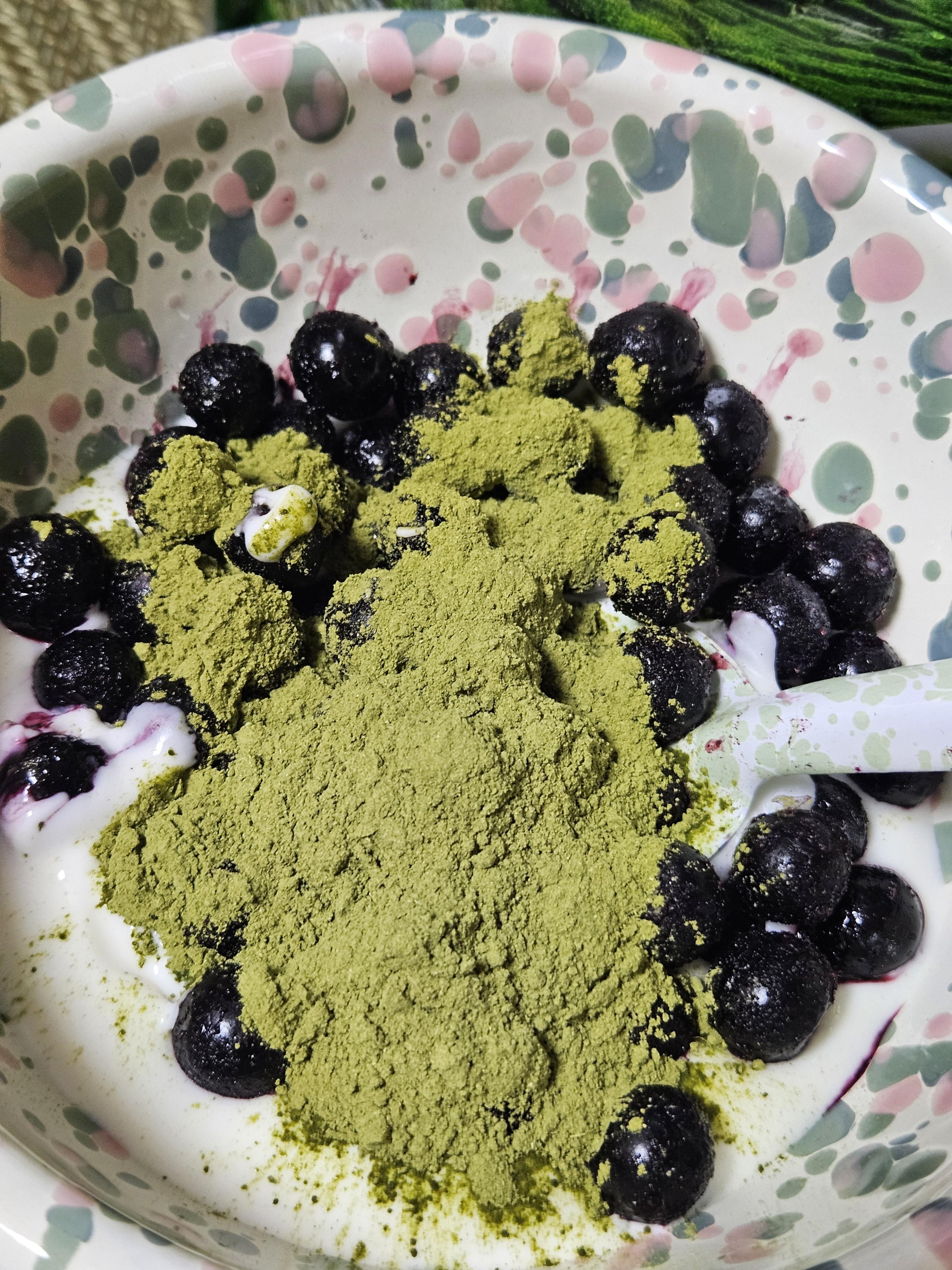 색이 예쁘진 않지만 나한텐 최애 간식이라 자부하며 건강 챙기는 중 ㅎㅎ 🫐🍵🥄🤤😋😍