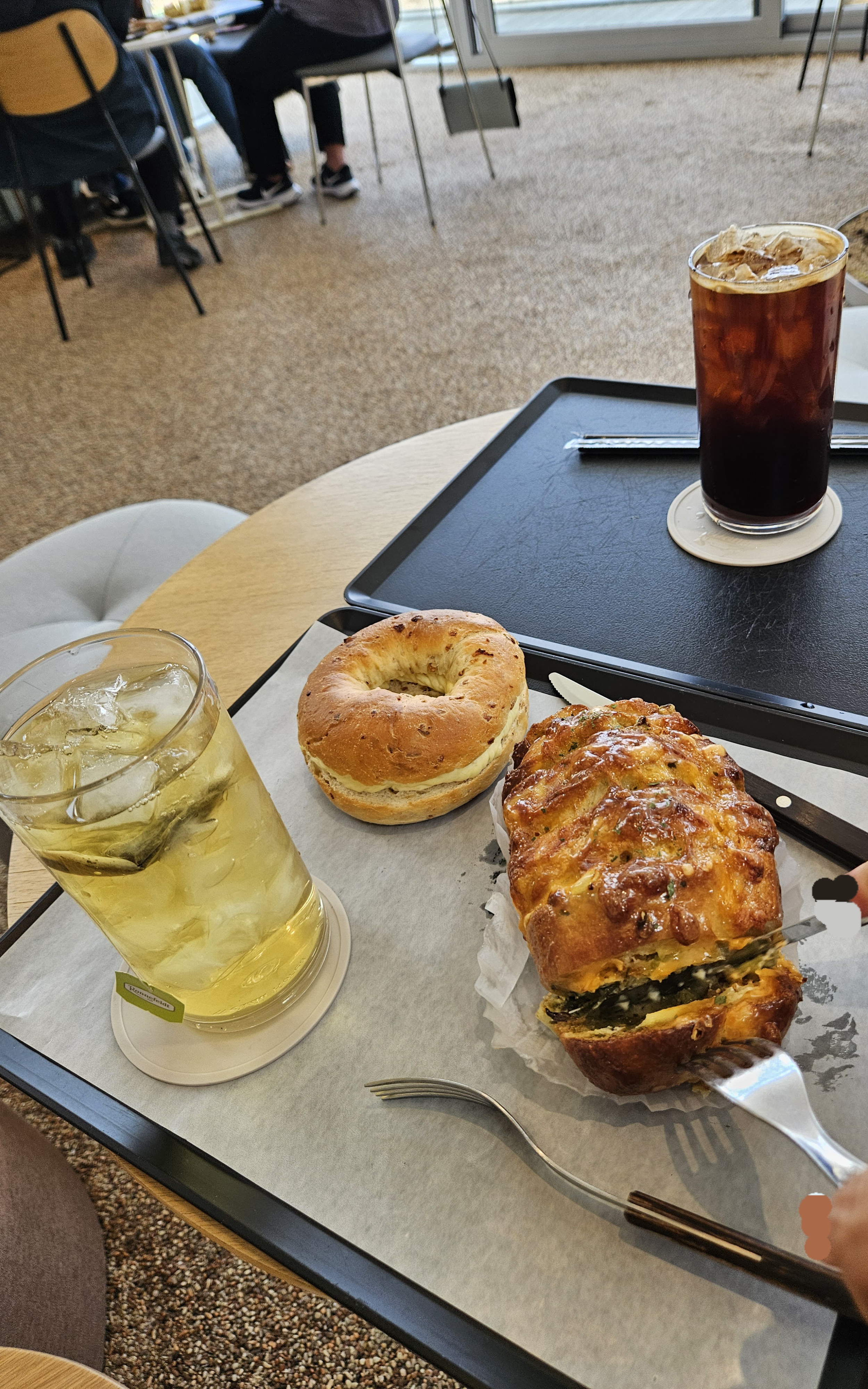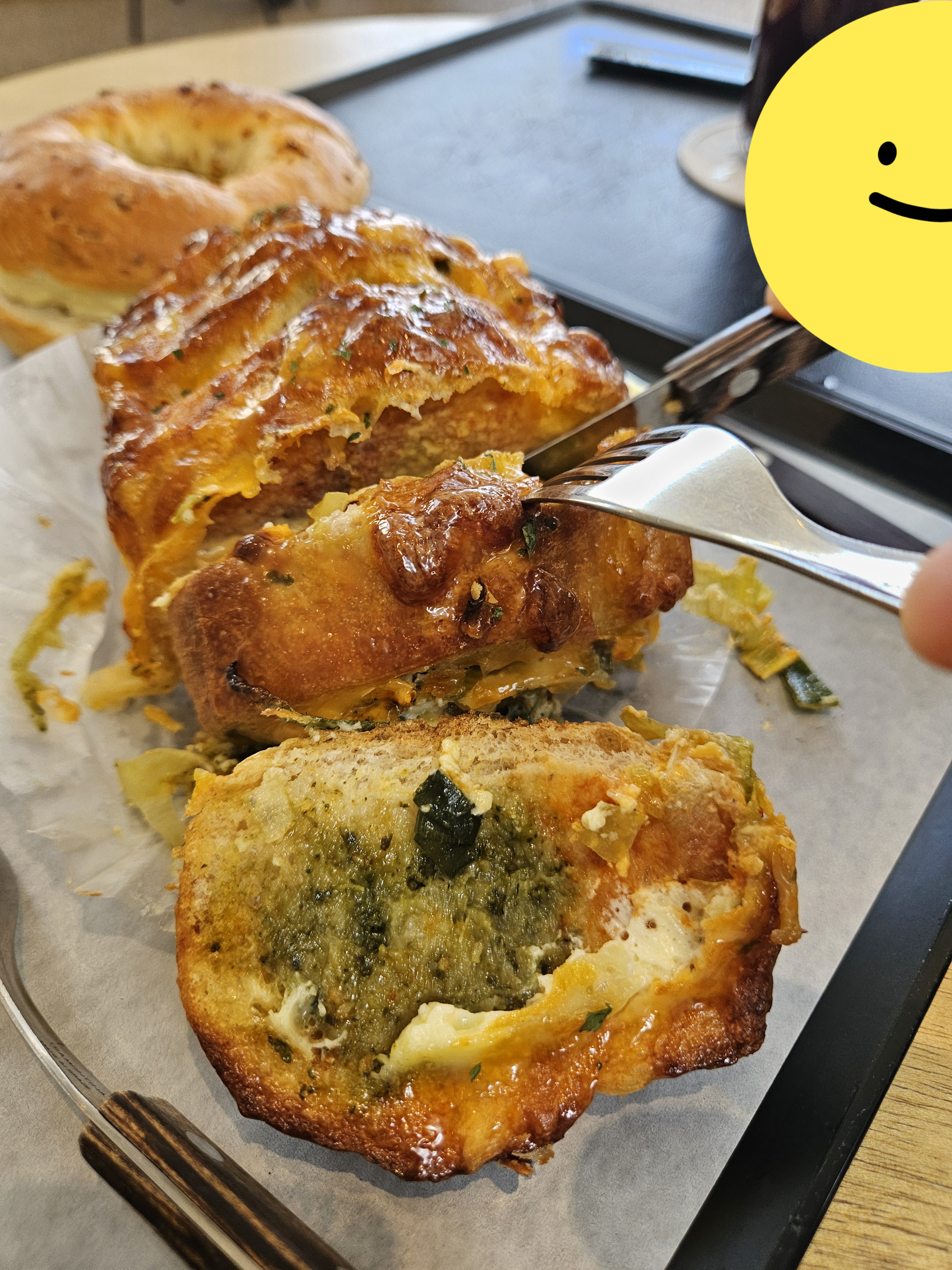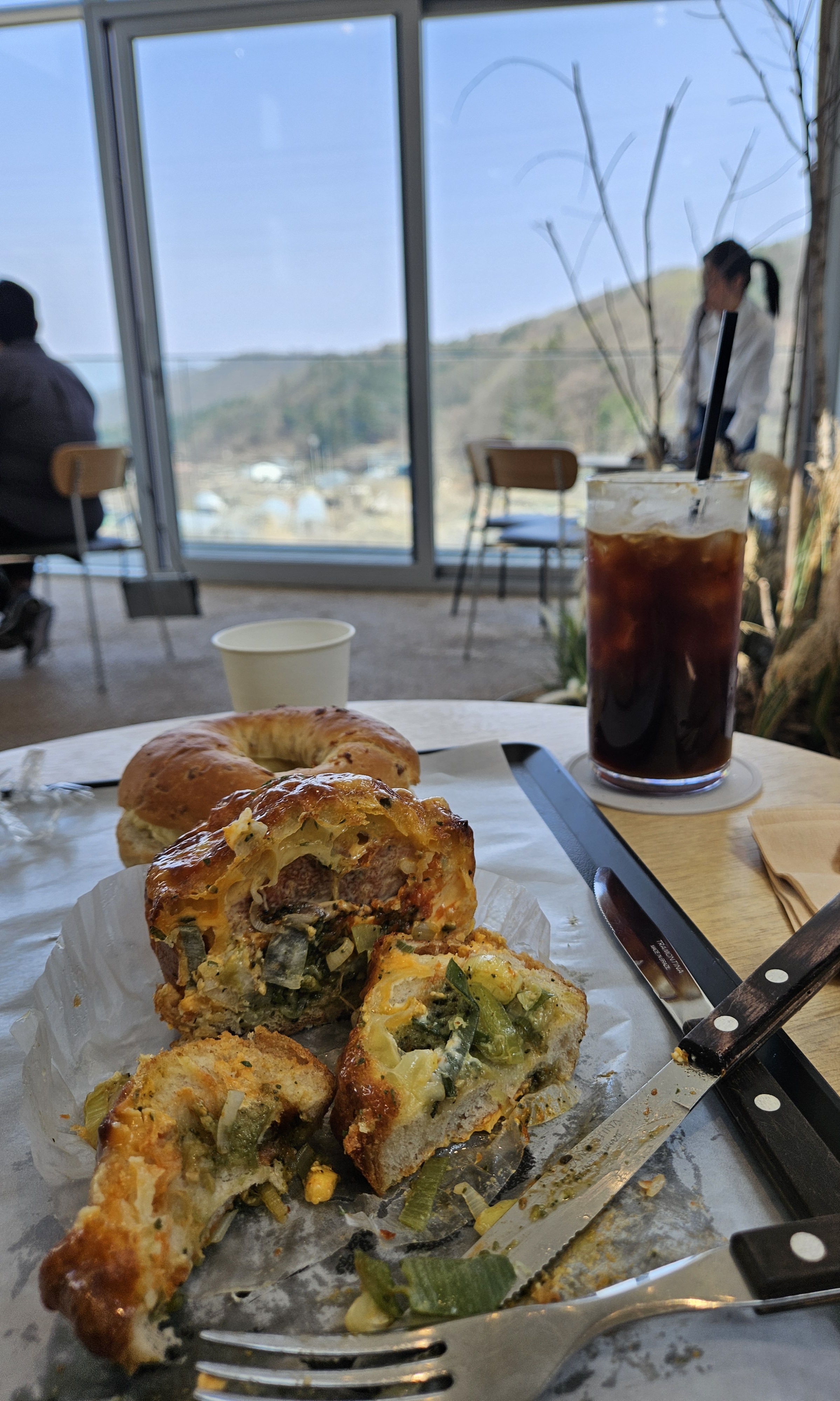 대파빵은 두꺼운 대파가 너무 많아서 먹기 불편했고 치즈랑 양념이 짜서 마늘빵 시킬 걸 싶었지만 양파 크림치즈 베이글이 담백하고 다진 양파랑 크림치즈 조합이 좋아 맛있게 먹었음 ㅎㅎ