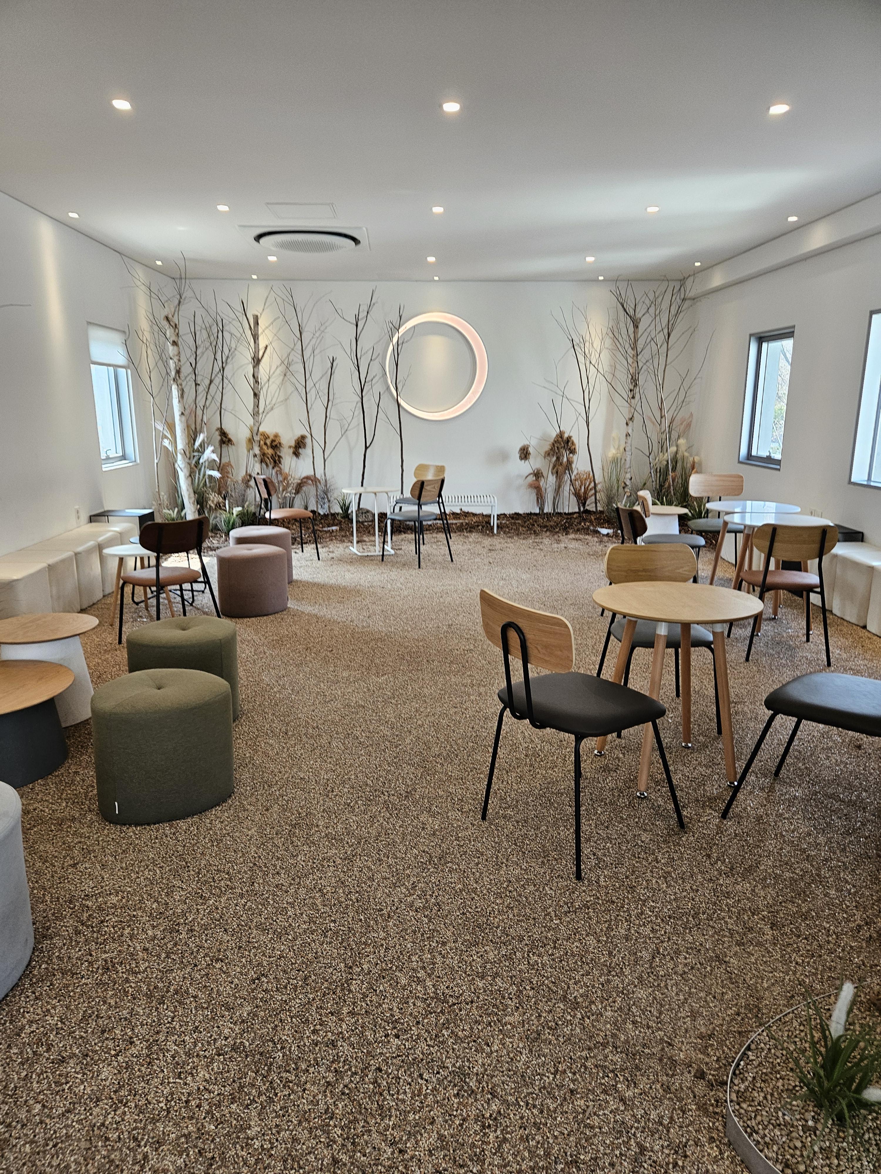 천고가 높고 통창에 테라스석도 많고 공간별 컨셉이 달라서 남한한성 가면 방문하기 나쁘지 않았던 카페 숨.