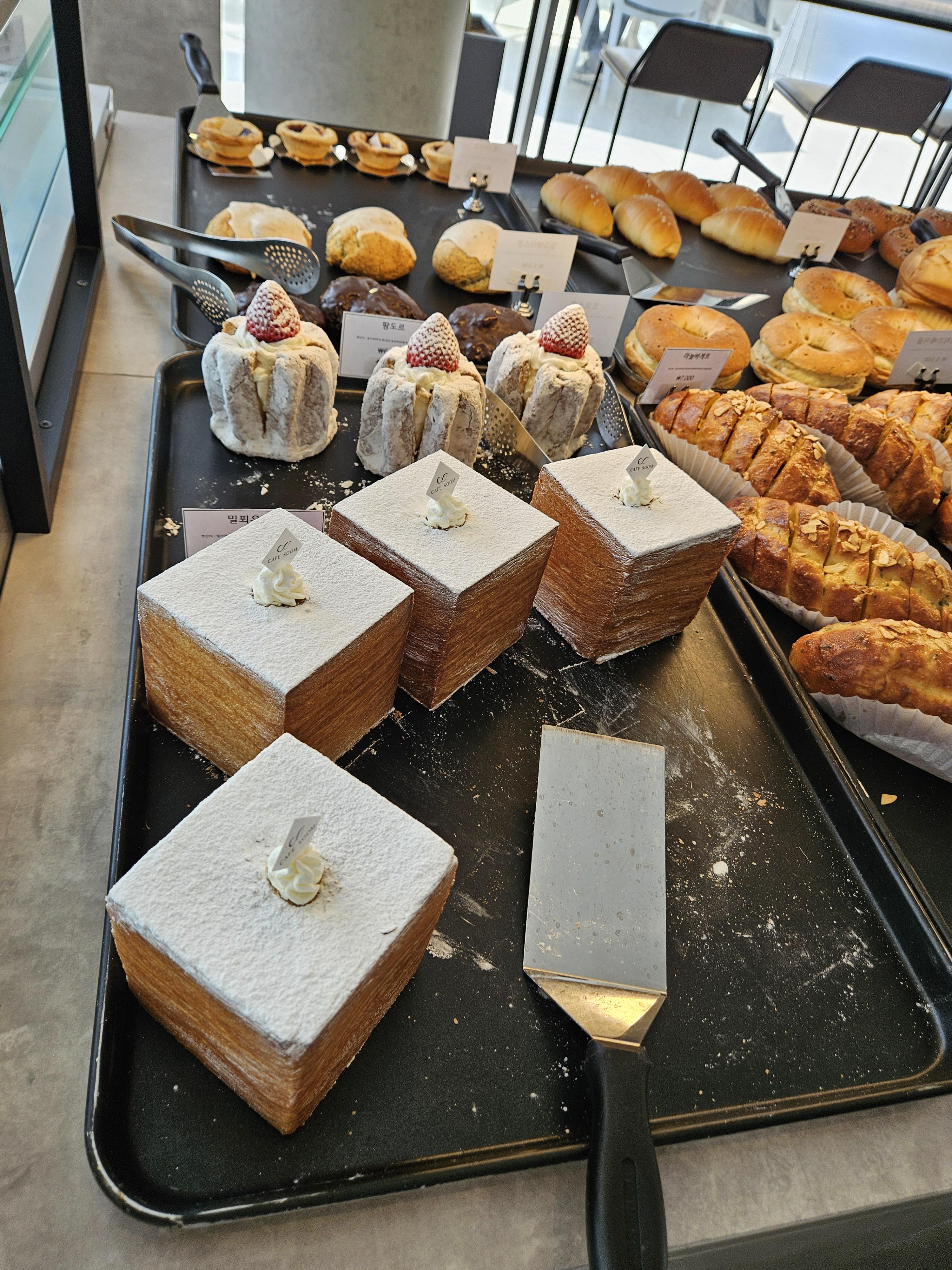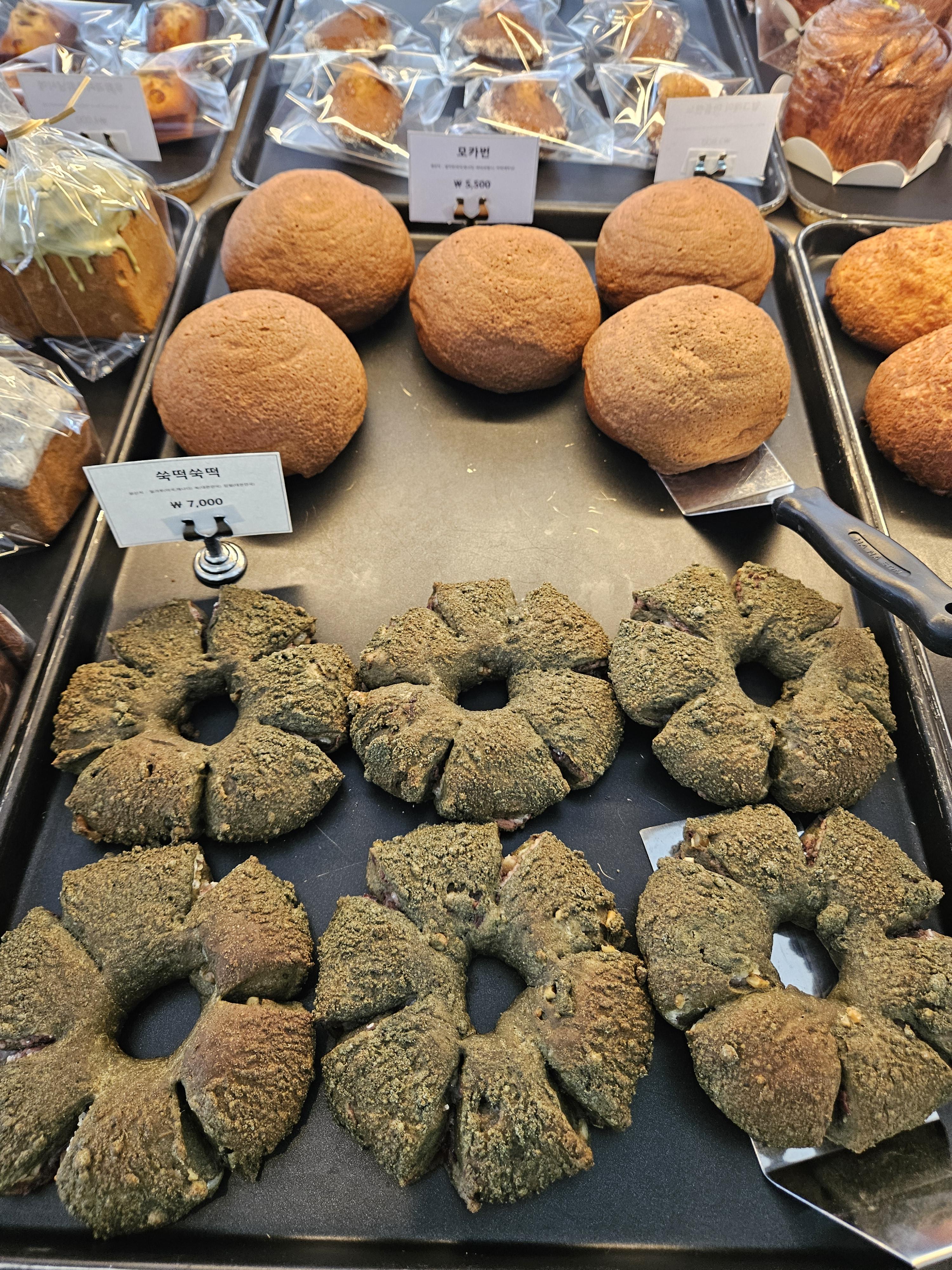 왼편은 카운터와 제조공간 중앙은 다양한 종류의 빵이 진열되어 있었음.🎁