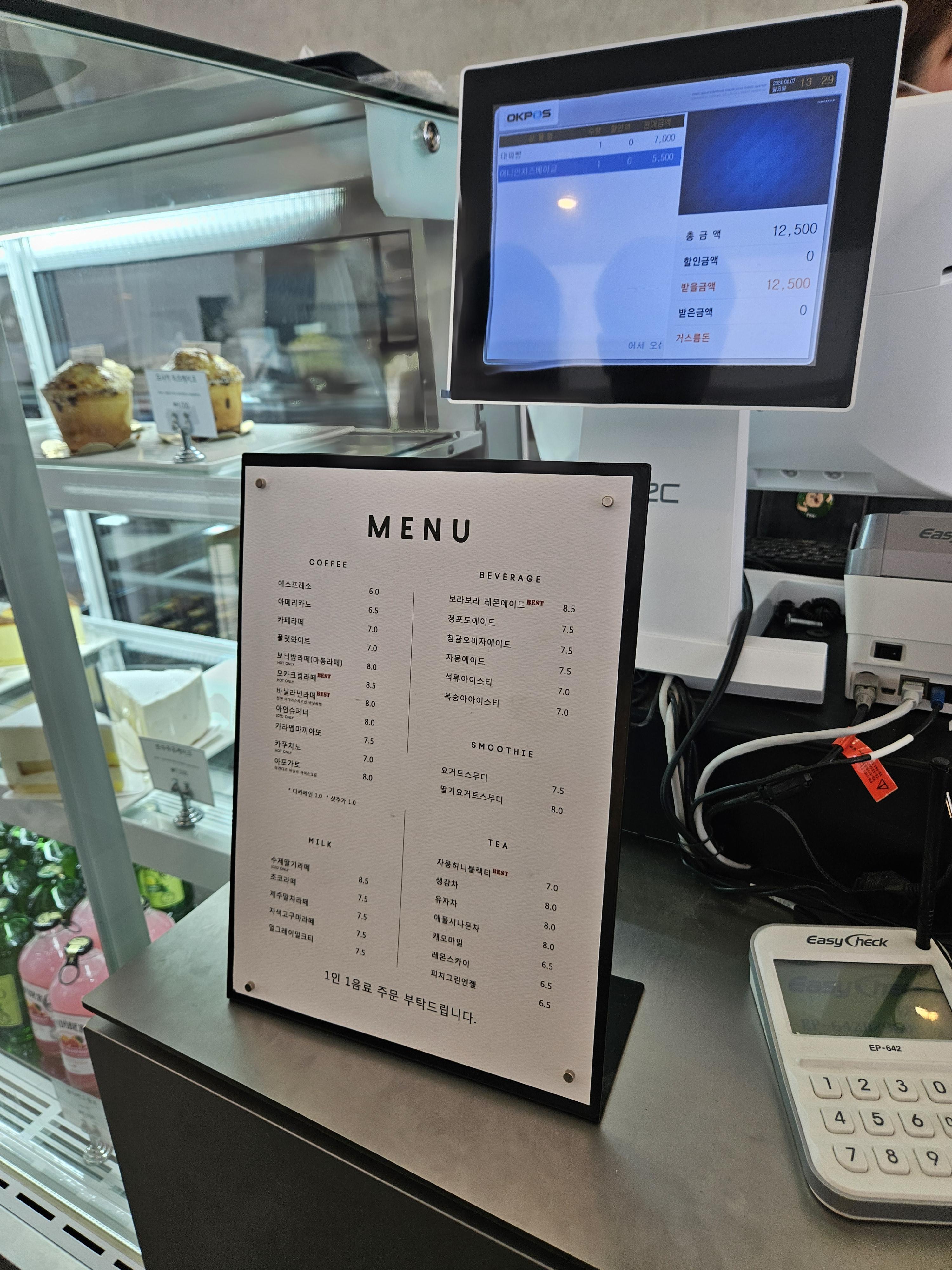 음료는 커피(6,5)와 피치그린엔젤 tea(6,5) 선택함.