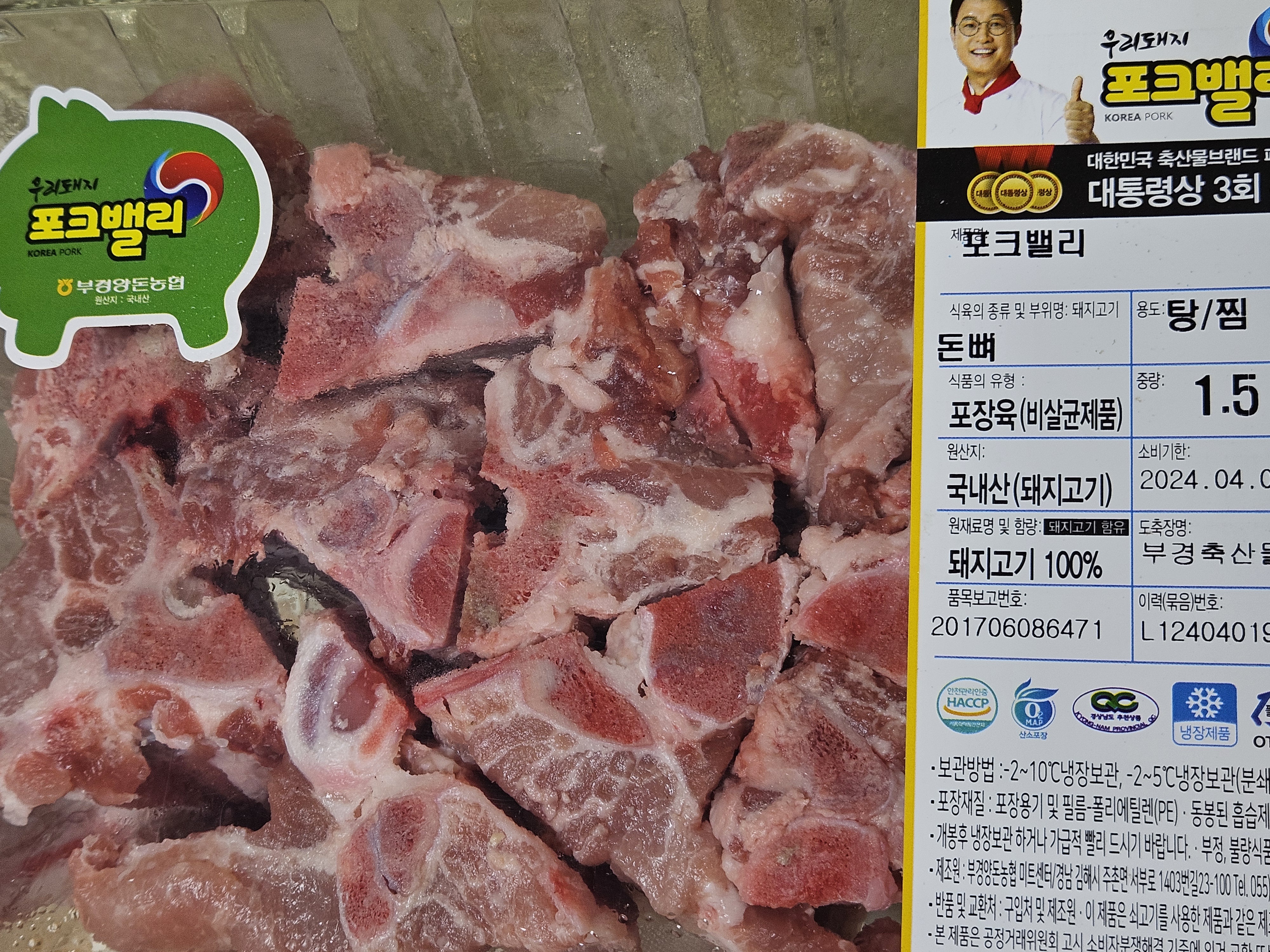 모든 고기는 냉동보다 냉장육이 더 맛있으니 냉장 돈뼈로 구입했는데 워낙 가성비 좋은 부위다 보니 3kg 두 팩에 2만 원도 안 되는 가격에 구입할 수 있었다.