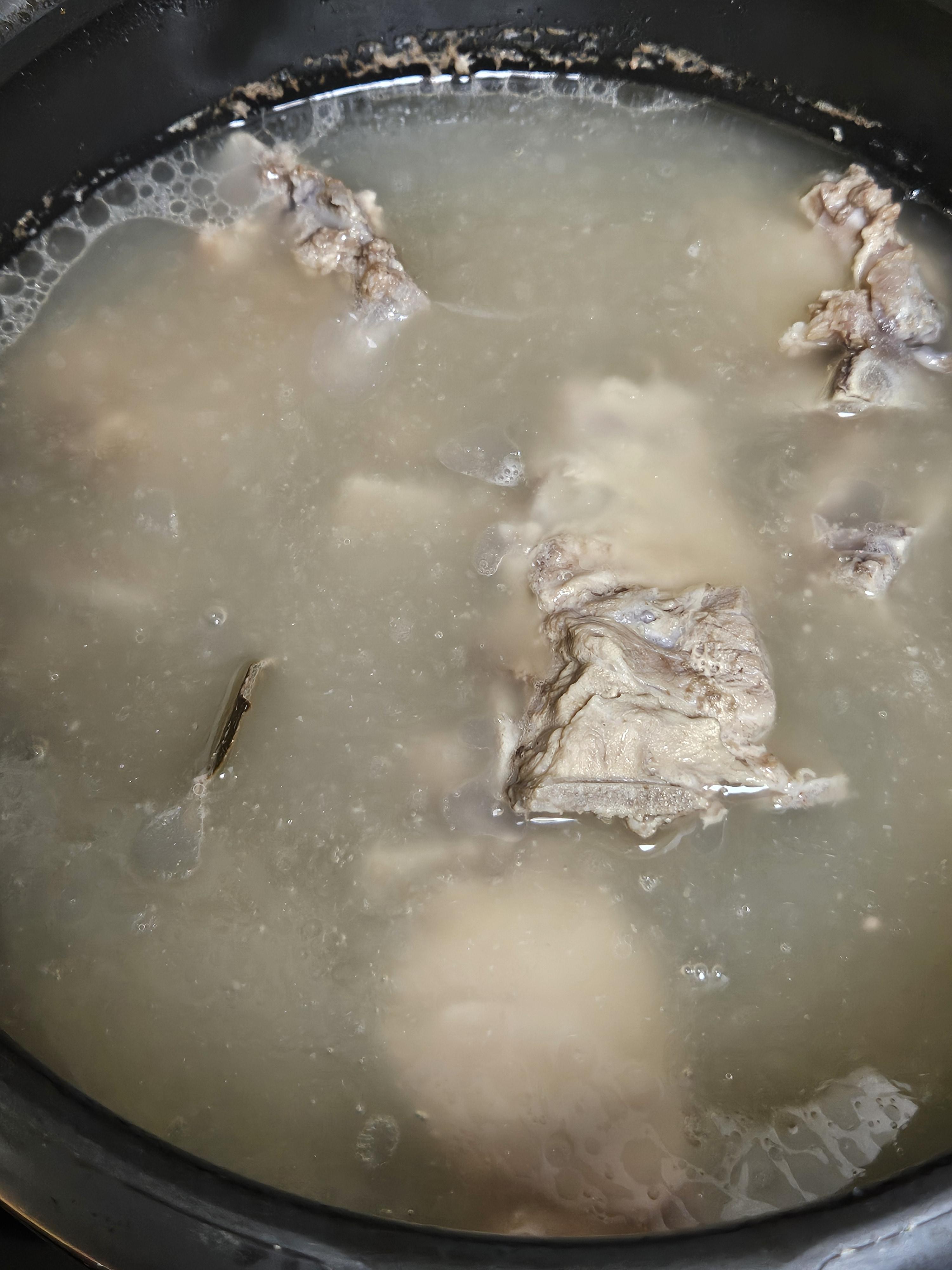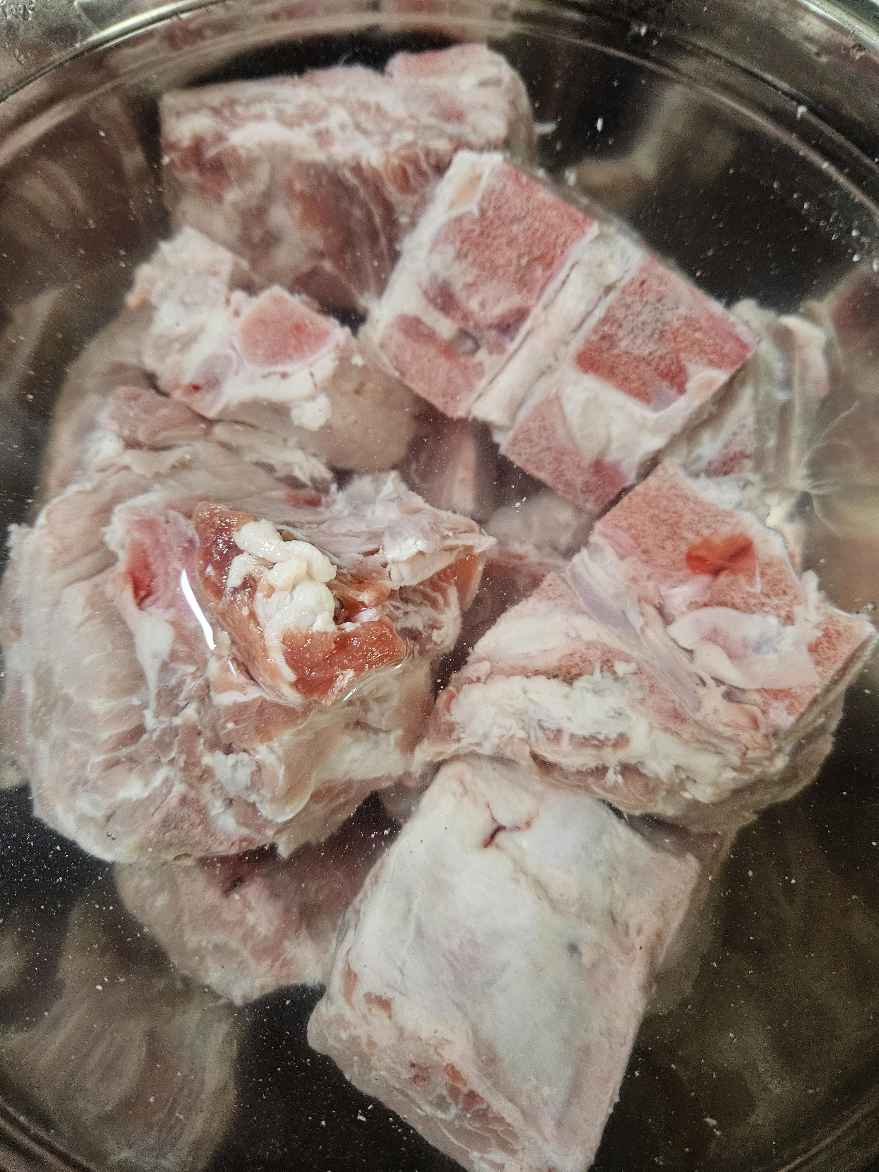 고기 도착한 날 저녁 엄마가 감자탕을 해주셨는데 조리하기 전 핏물 빼려고 찬물에 담가놨는데 빠지는 핏물이 별로 없어서 그냥 끓는 물에 한 번 삶아낸 후 조리해도 ok.