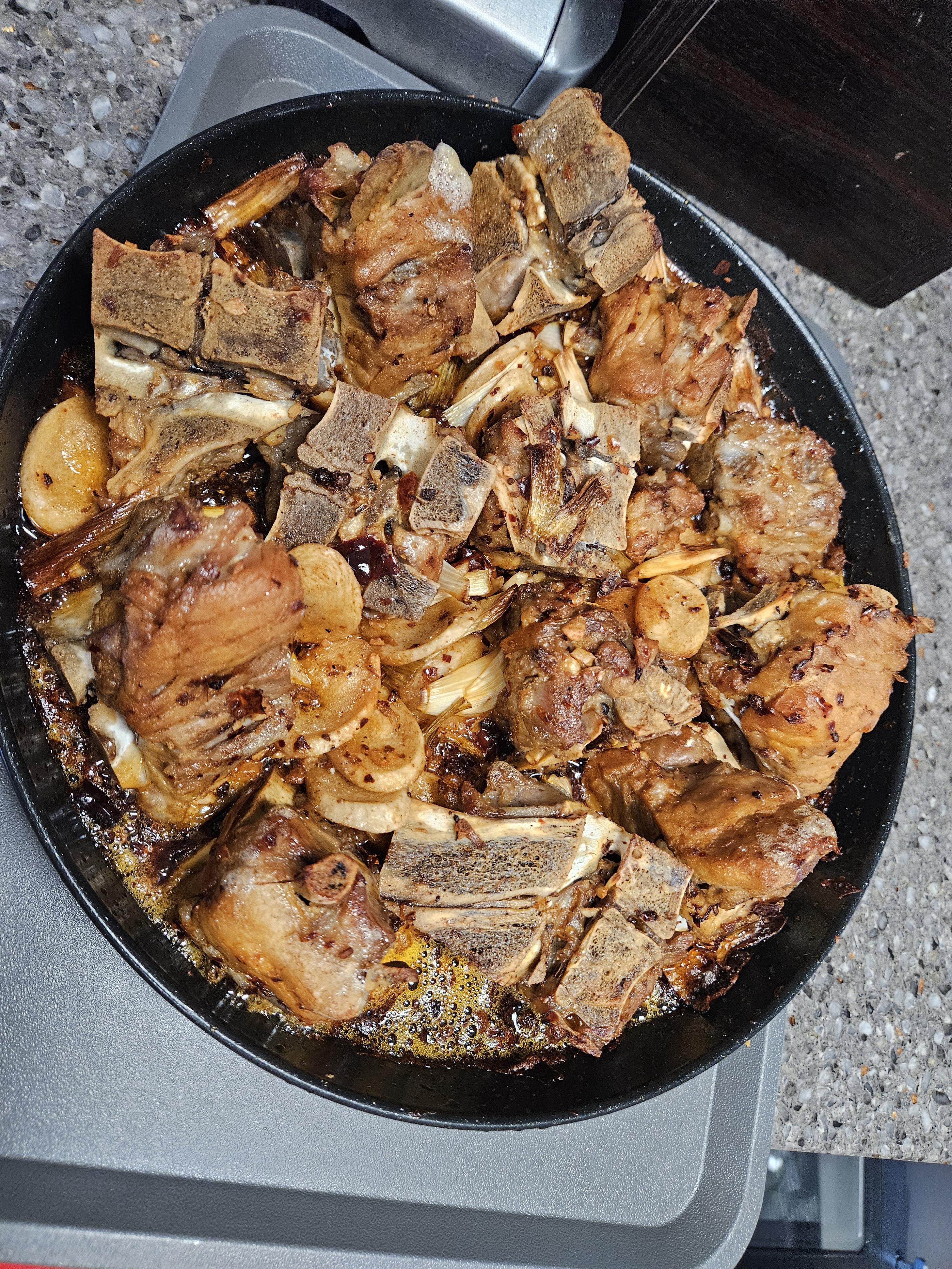 마라샹궈 소스가 고추기름 느낌에 건더기로 이루어져 있어서 너무 많이 넣으면 짤 수 있을 것 같아서 1포로 적당하지 않을까 싶었는데 고기가 1.5kg라서 1포 뜯어서 고기에 양념 발랐더니 부족해 보이더라.