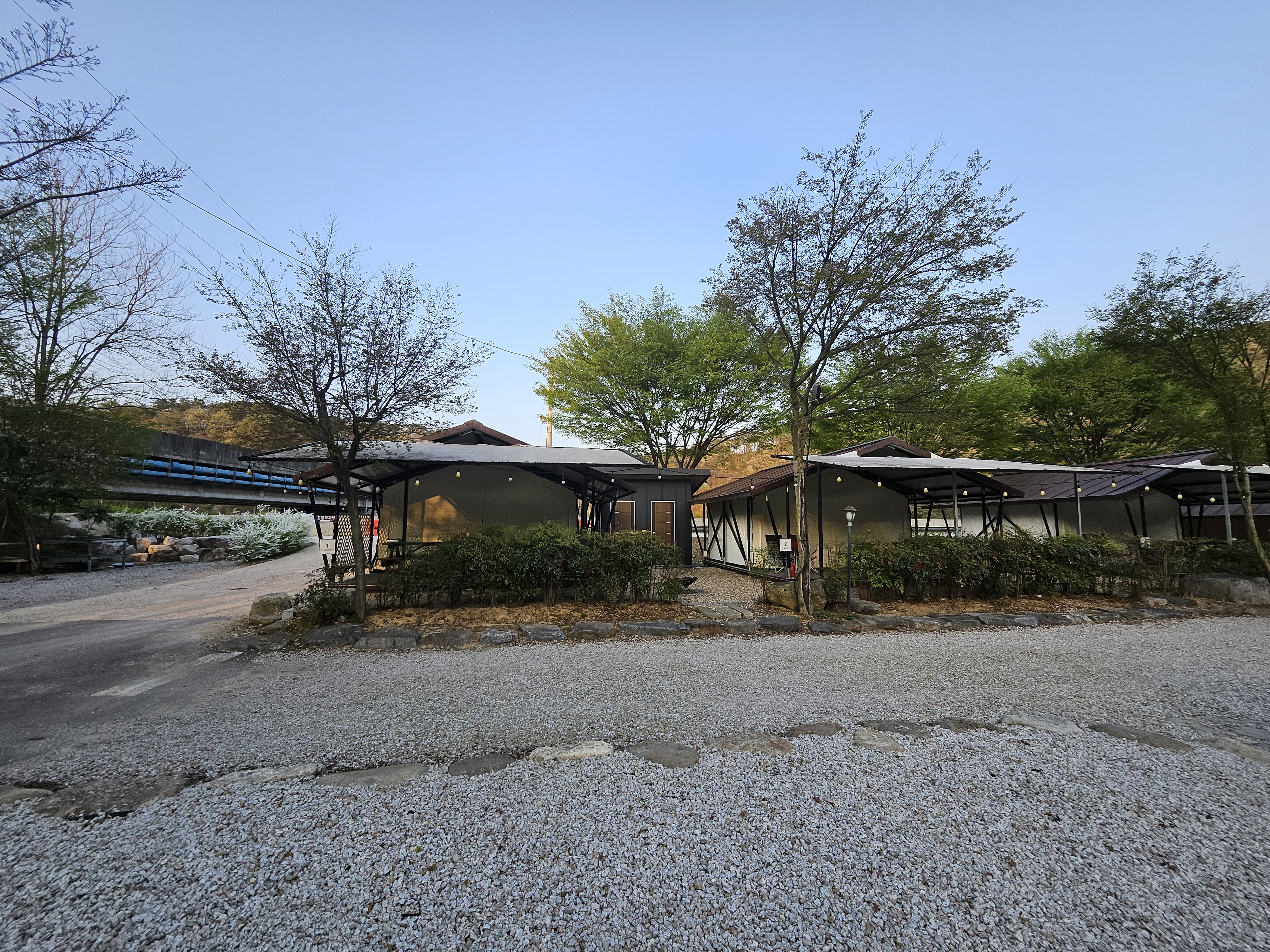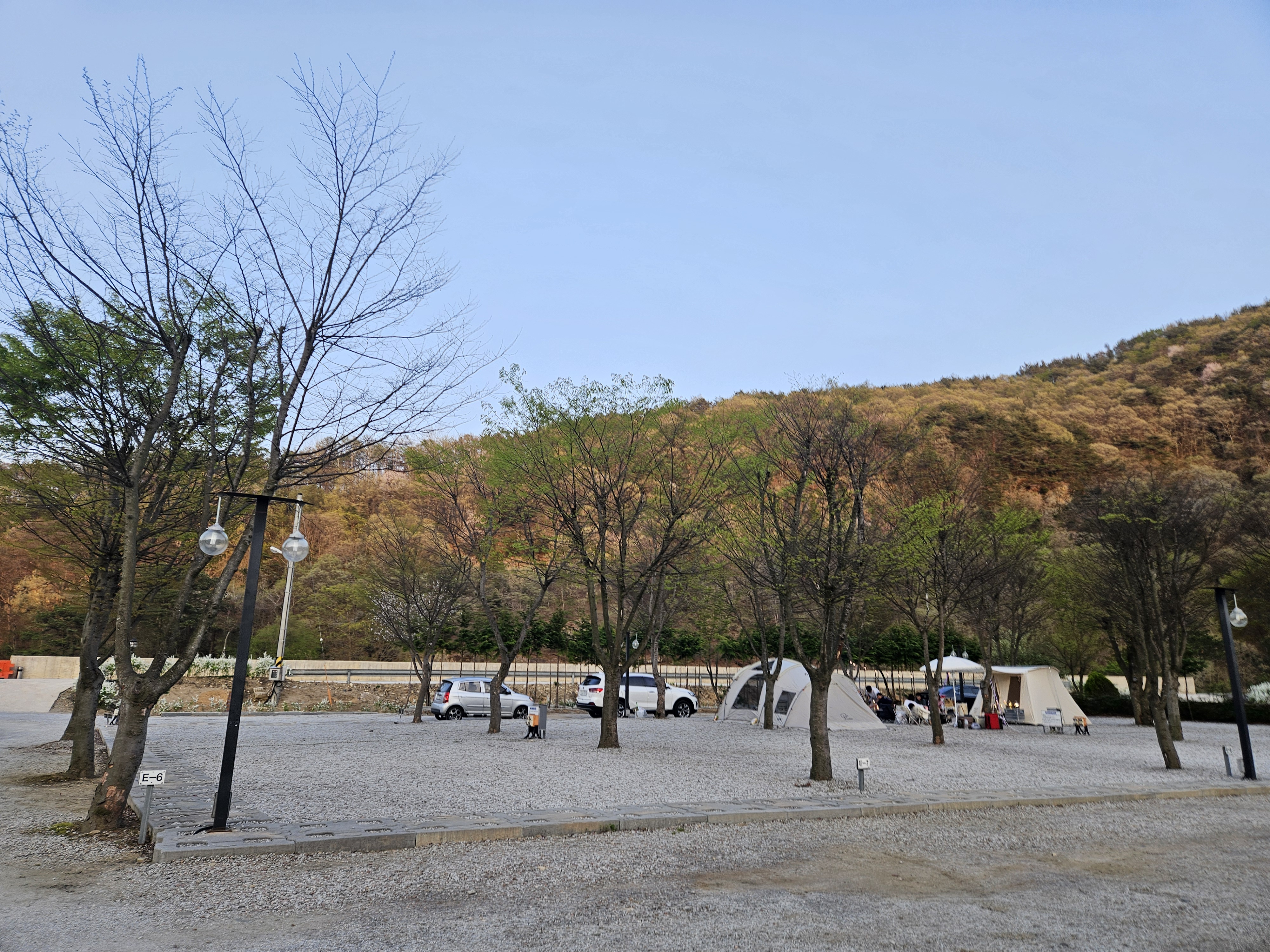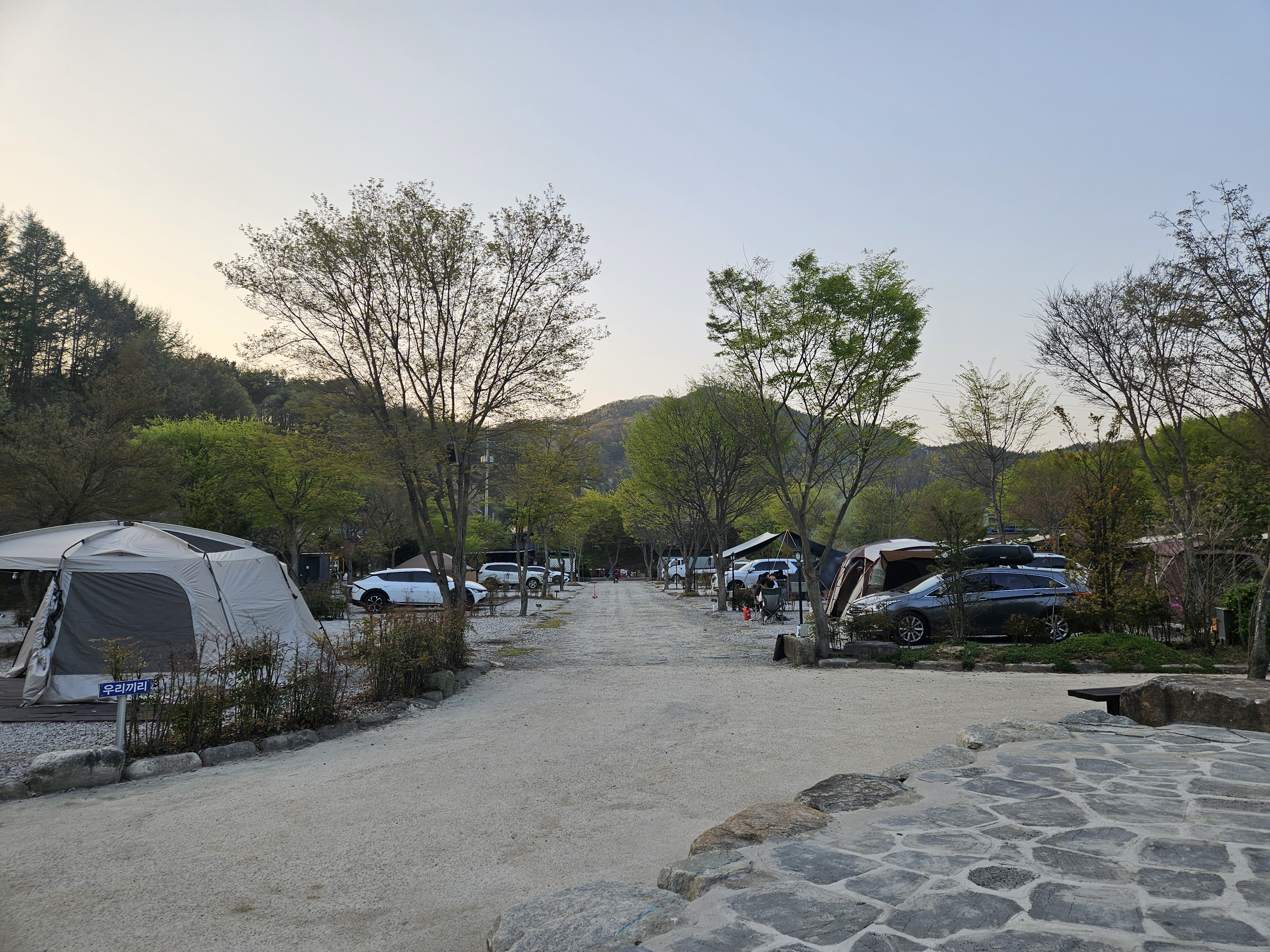사이트마다 개별 주차 가능했는데 D사이 1-5번은 개구리주차? 및 공영주차장을 이용해야 한다고 하니 참고. 주차장이 1-5 글램핑장 뒤쪽에 있는데 가깝긴 하지만 떨어져 있어 짐 옮기려면 불편할 듯.