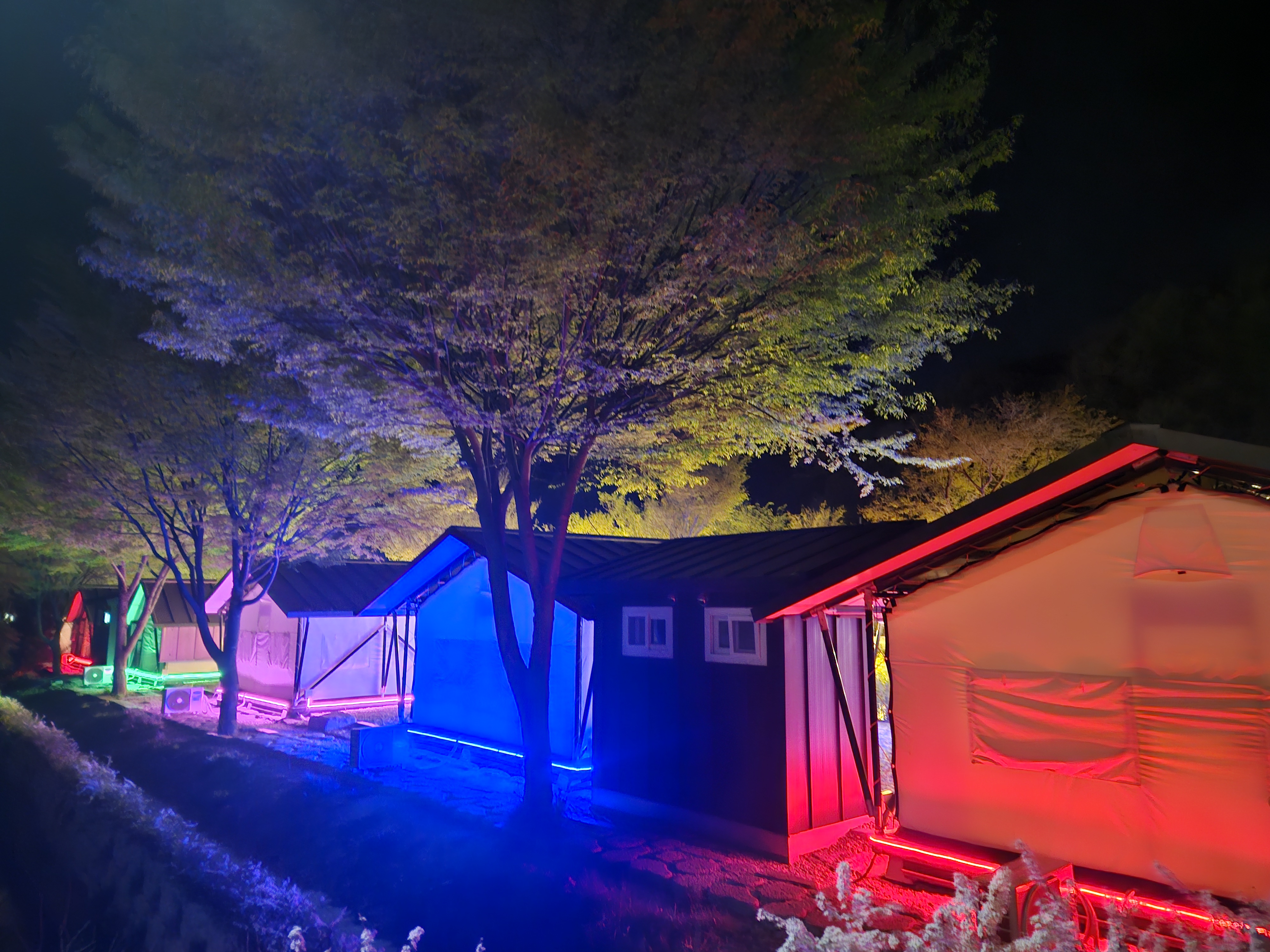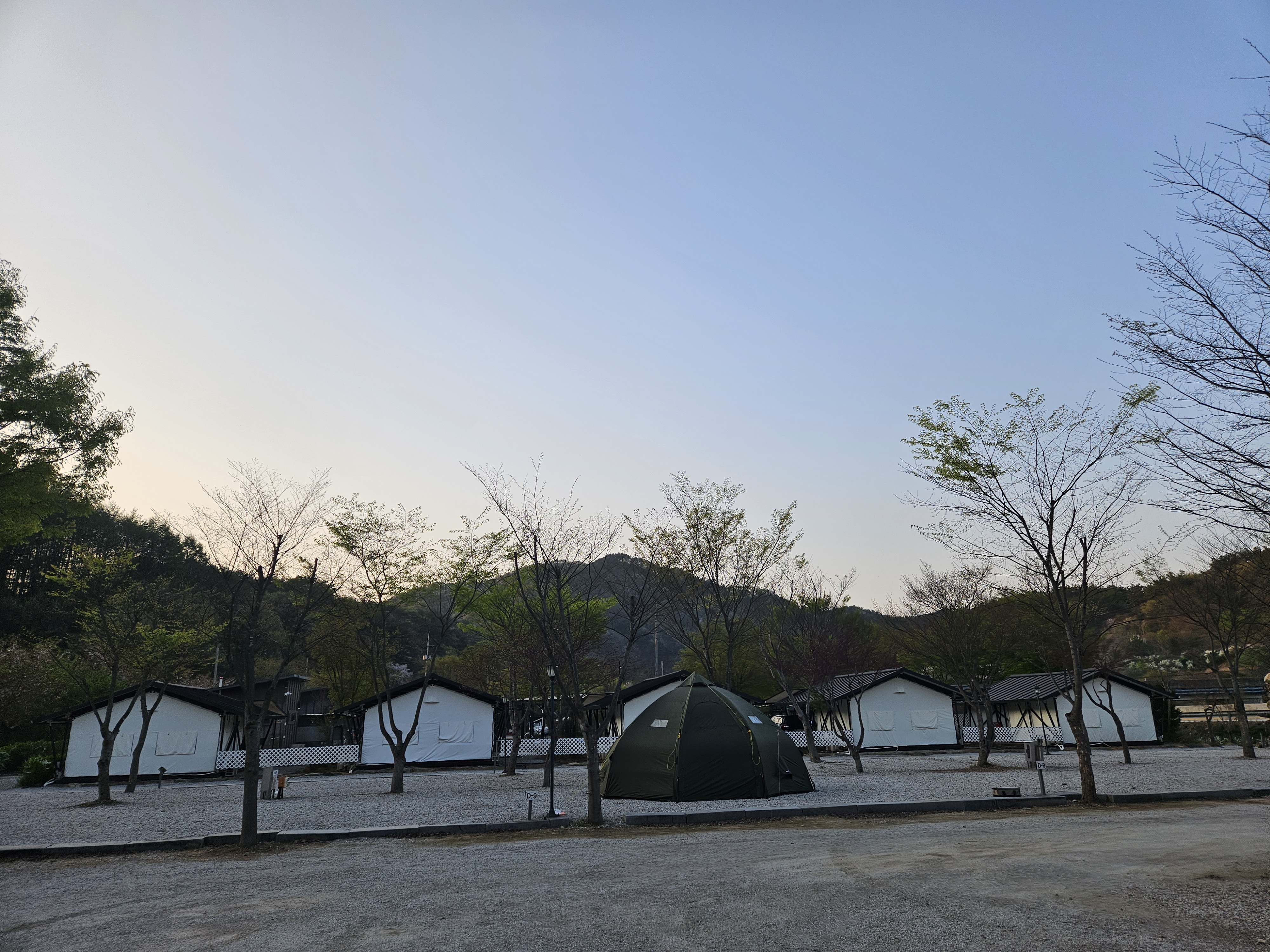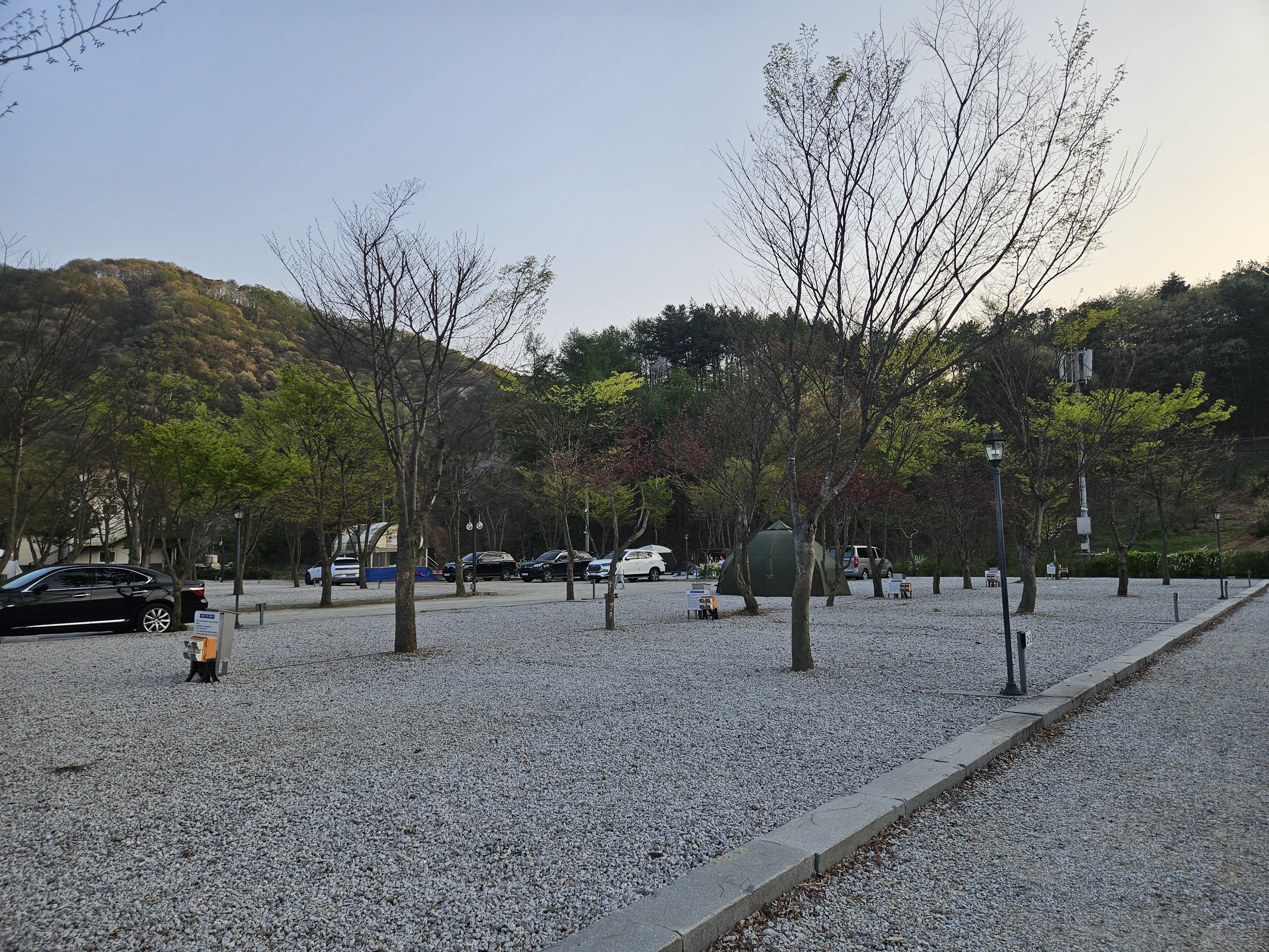 사이트마다 개별 주차 가능했는데 D사이 1-5번은 개구리주차? 및 공영주차장을 이용해야 한다고 하니 참고. 주차장이 1-5 글램핑장 뒤쪽에 있는데 가깝긴 하지만 떨어져 있어 짐 옮기려면 불편할 듯.