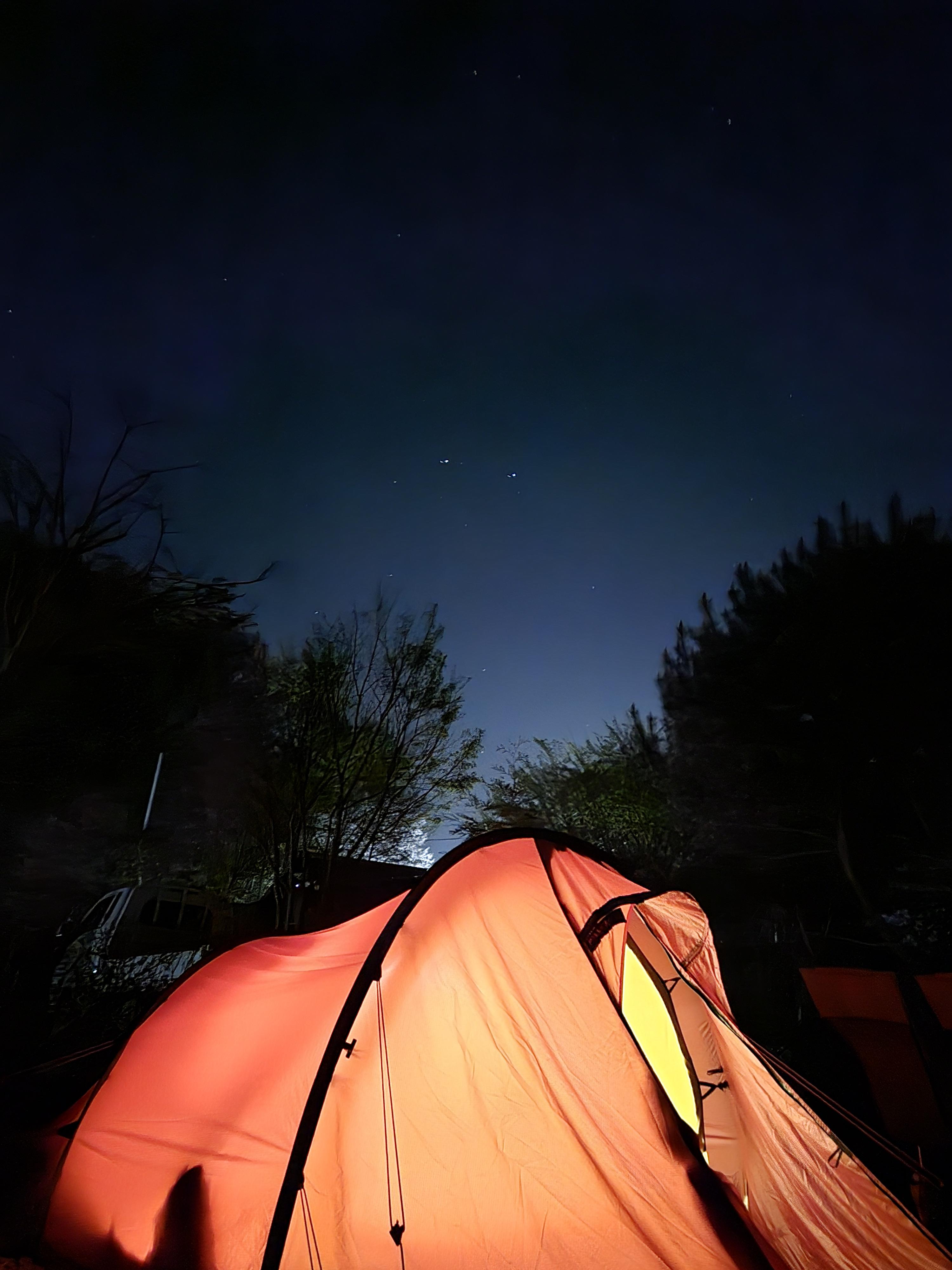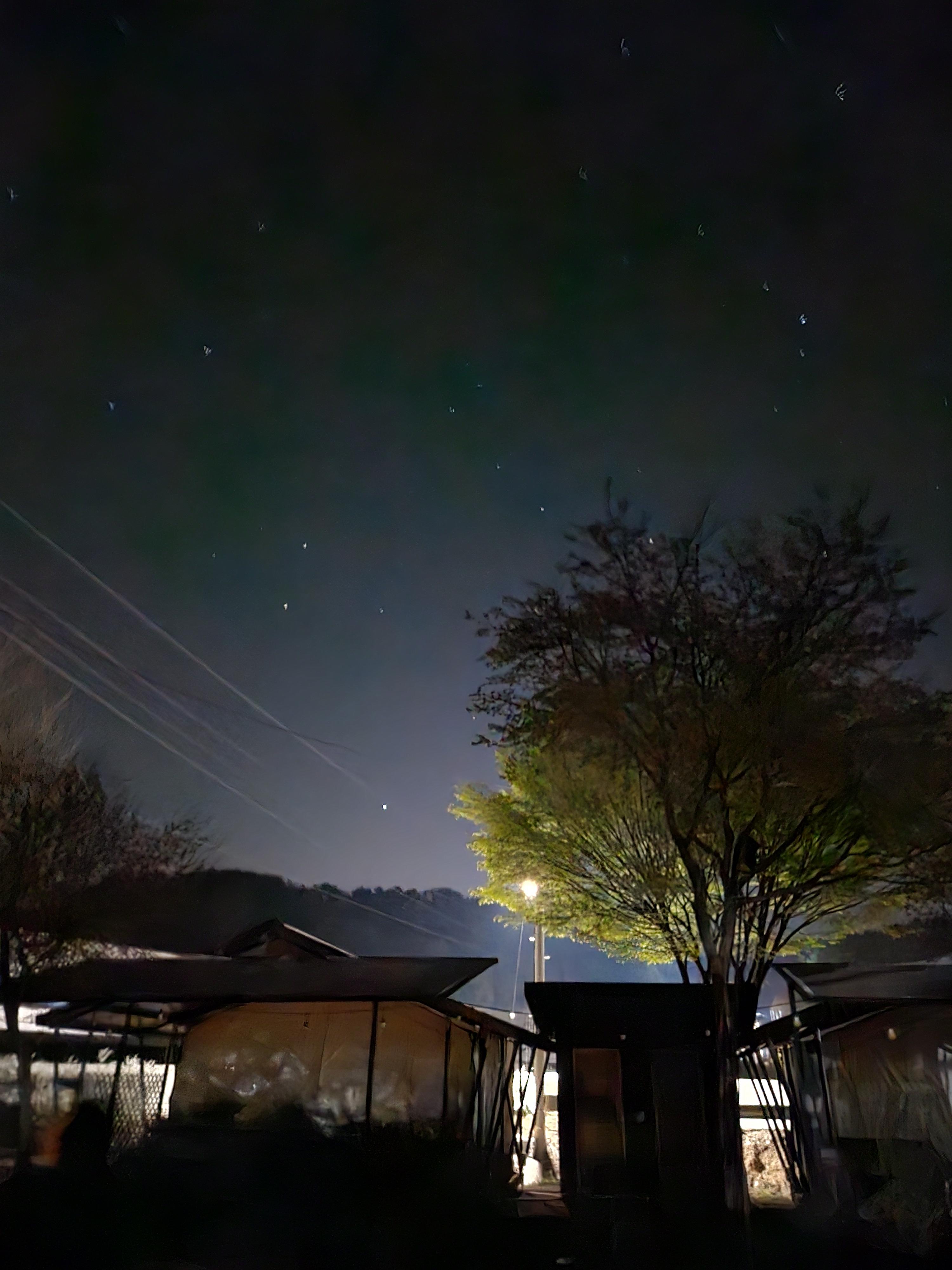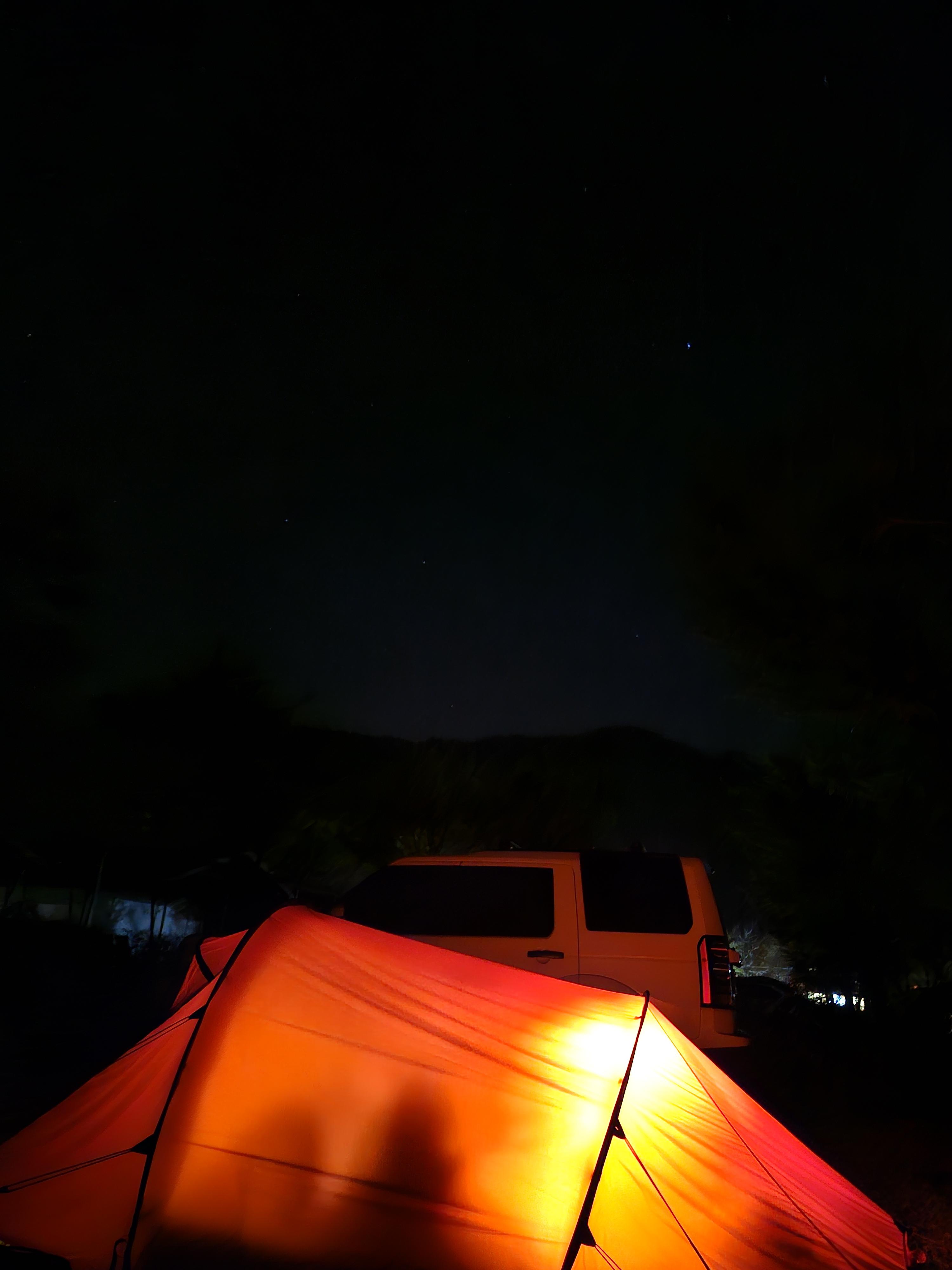캠핑장에 조명이 들어올 땐 별이 잘 안 보여서 이날 별 보기 어렵나 했는데 매너타임에 소등하니 별이 제법 잘 보이더라 🌟