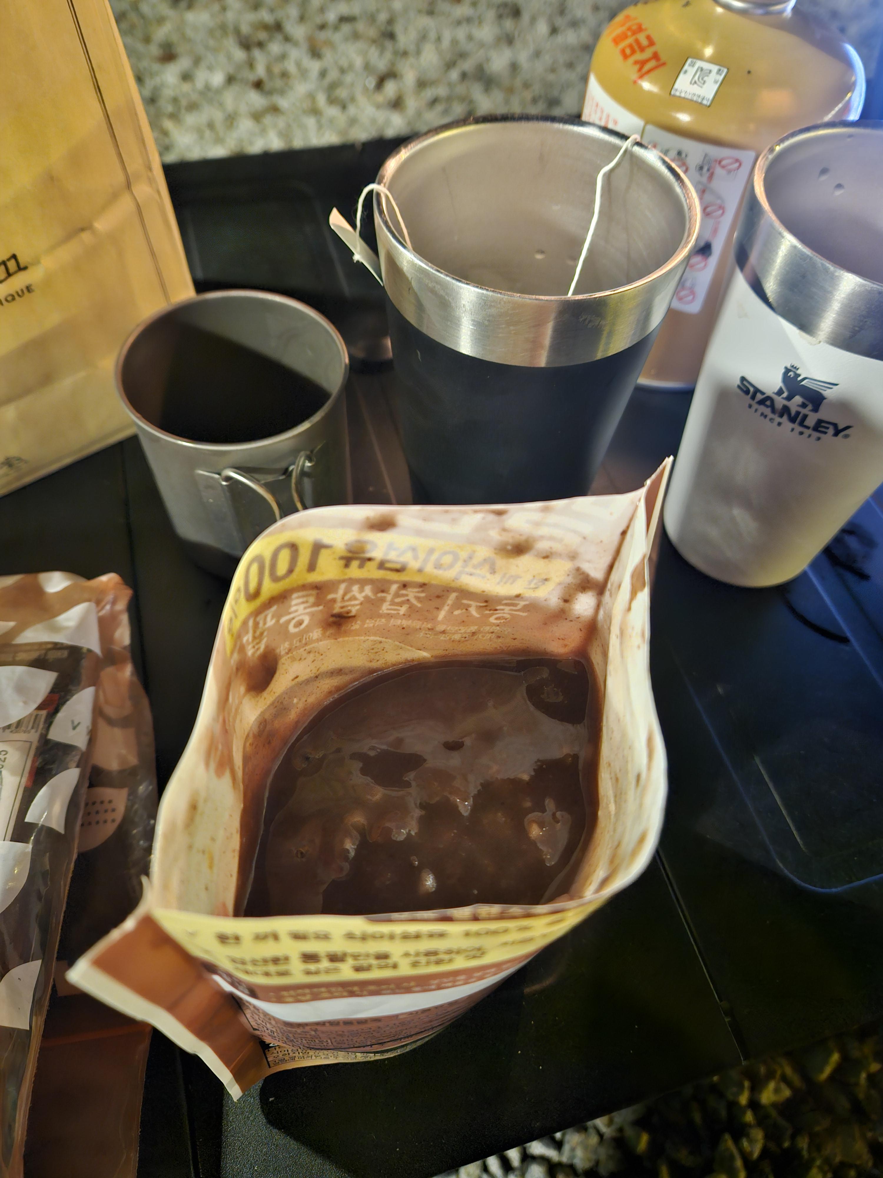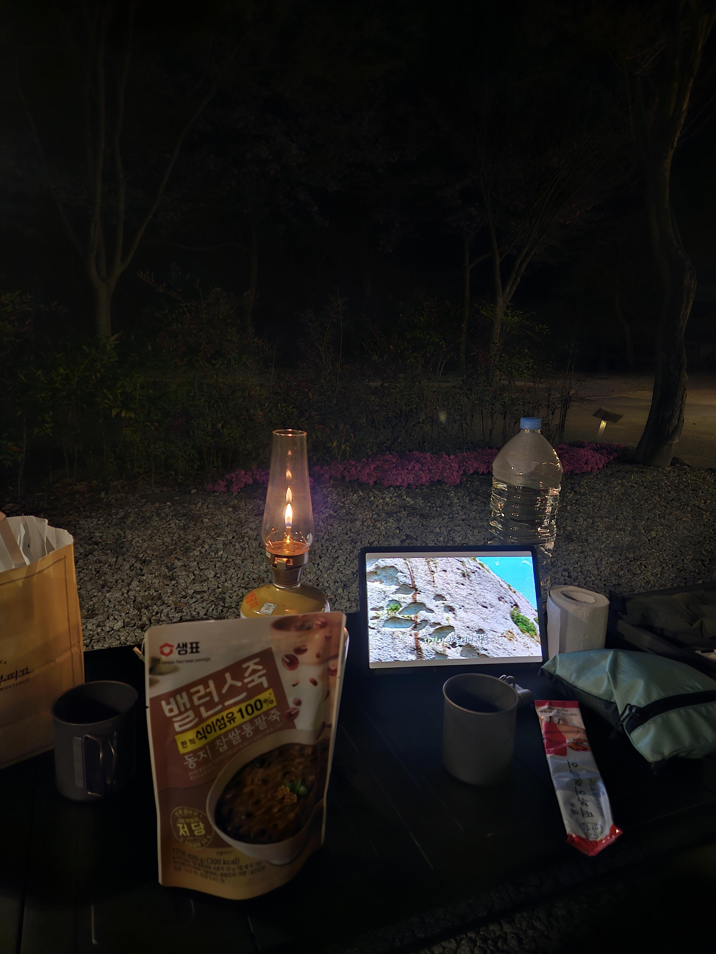 차 마실 물 끓여주고 어묵도 데워줘서 티타임 후 좋아하는 팥죽에 어묵으로 야식도 야무지게 챙겼네.