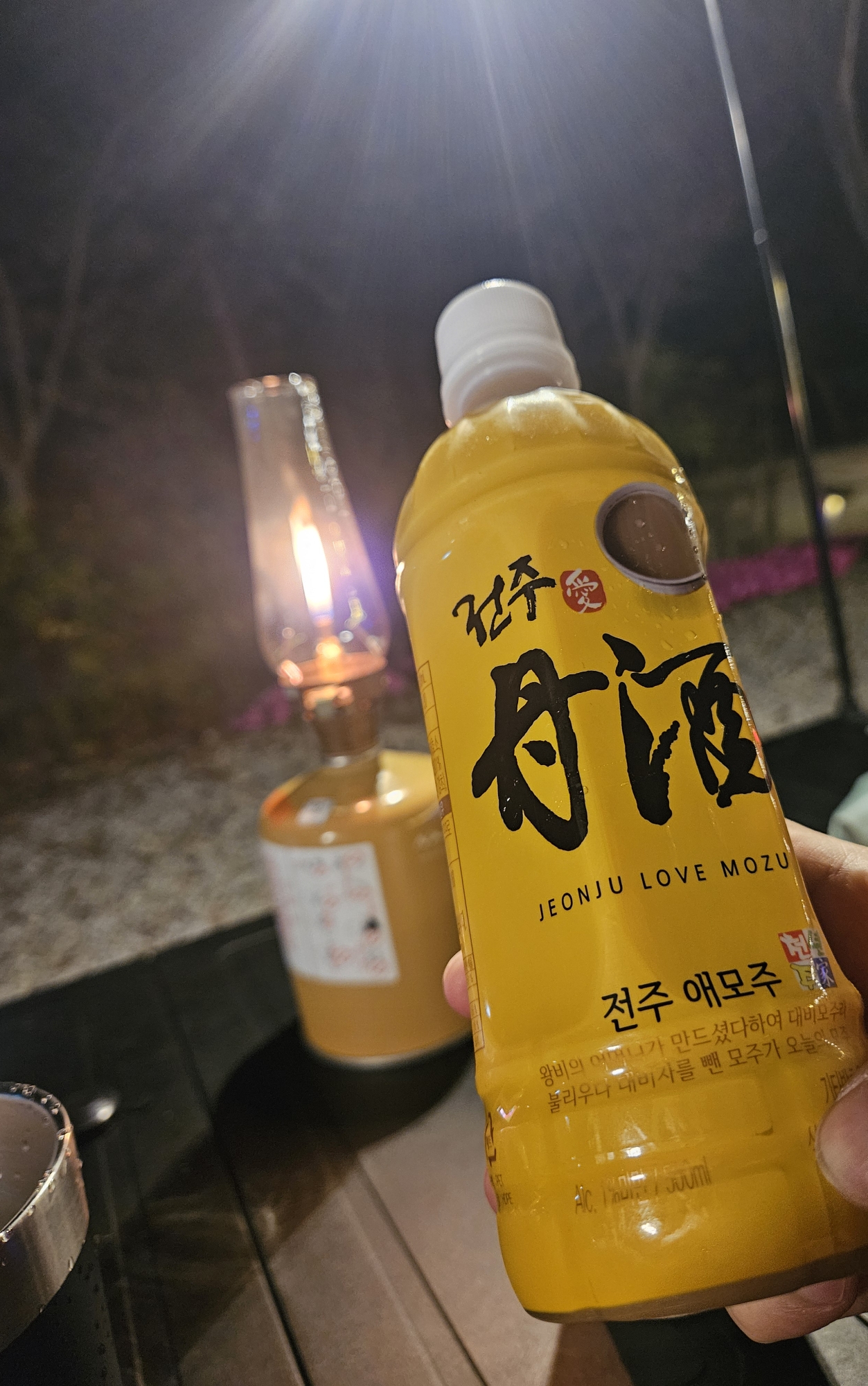 아이스크림 먹고 전주에서 사 온 모주도 나눠 마셨는데 모주가 브랜드 가격 등 종류 다양한가 보다. 우리가 먹은 건 전주 애모주인데 500ml 5천 원에 판매하더라. 우신탕 먹고 식당에서 사 온 건데 맛있어서 큰 걸로 사 올걸 그랬다 ㅋㅋ