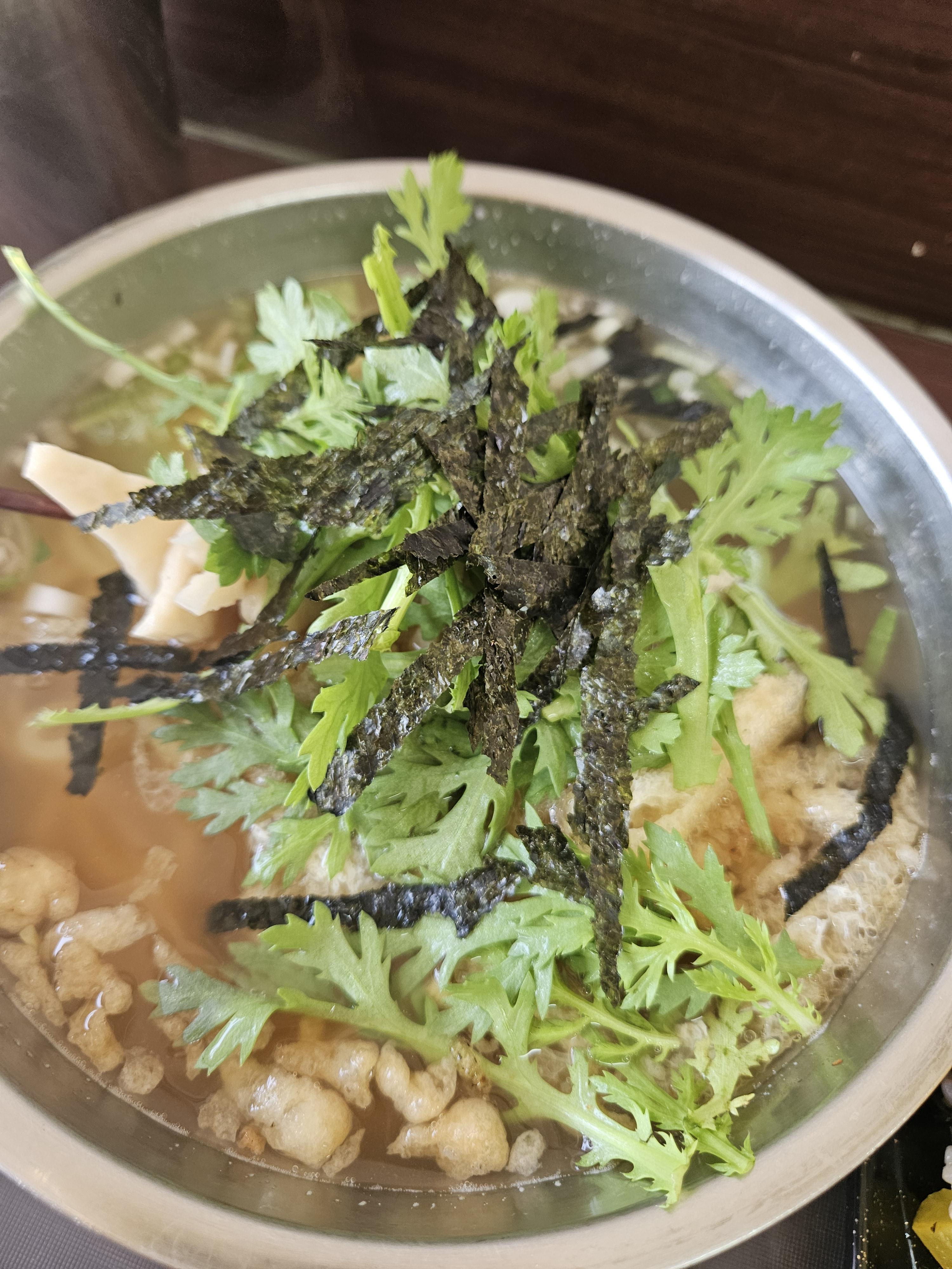 특히 우동에 수북하게 얹은 쑥갓하고 김 유부와 참기름 발라 알차게 말은 김밥도 완전 내 스타일 😍