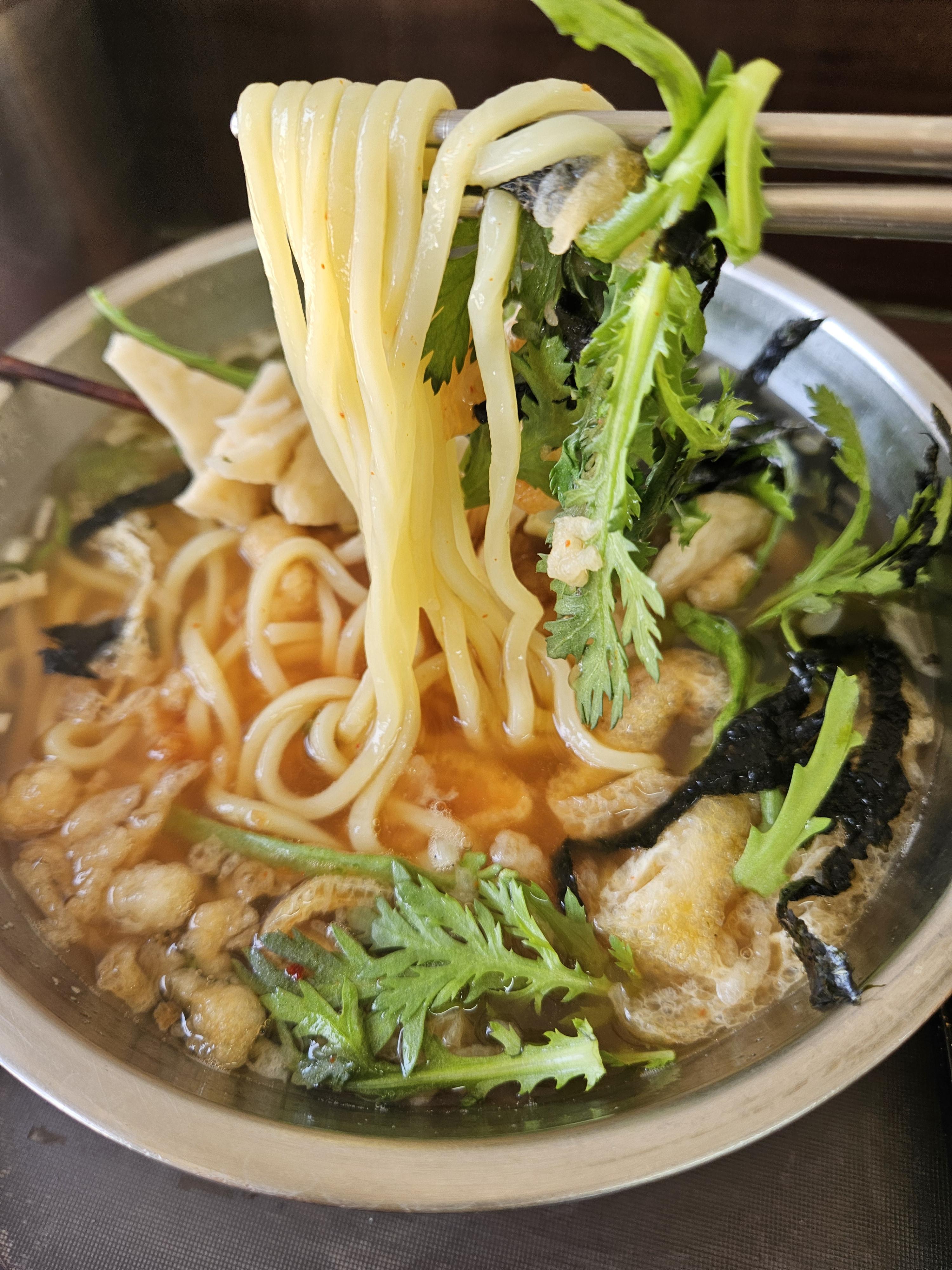 우동면은 탄성이 살아있고 잘 불지 않는 스타일. 면 먹을 때 후루룩 잘 못 먹는데 ㅋㅋ