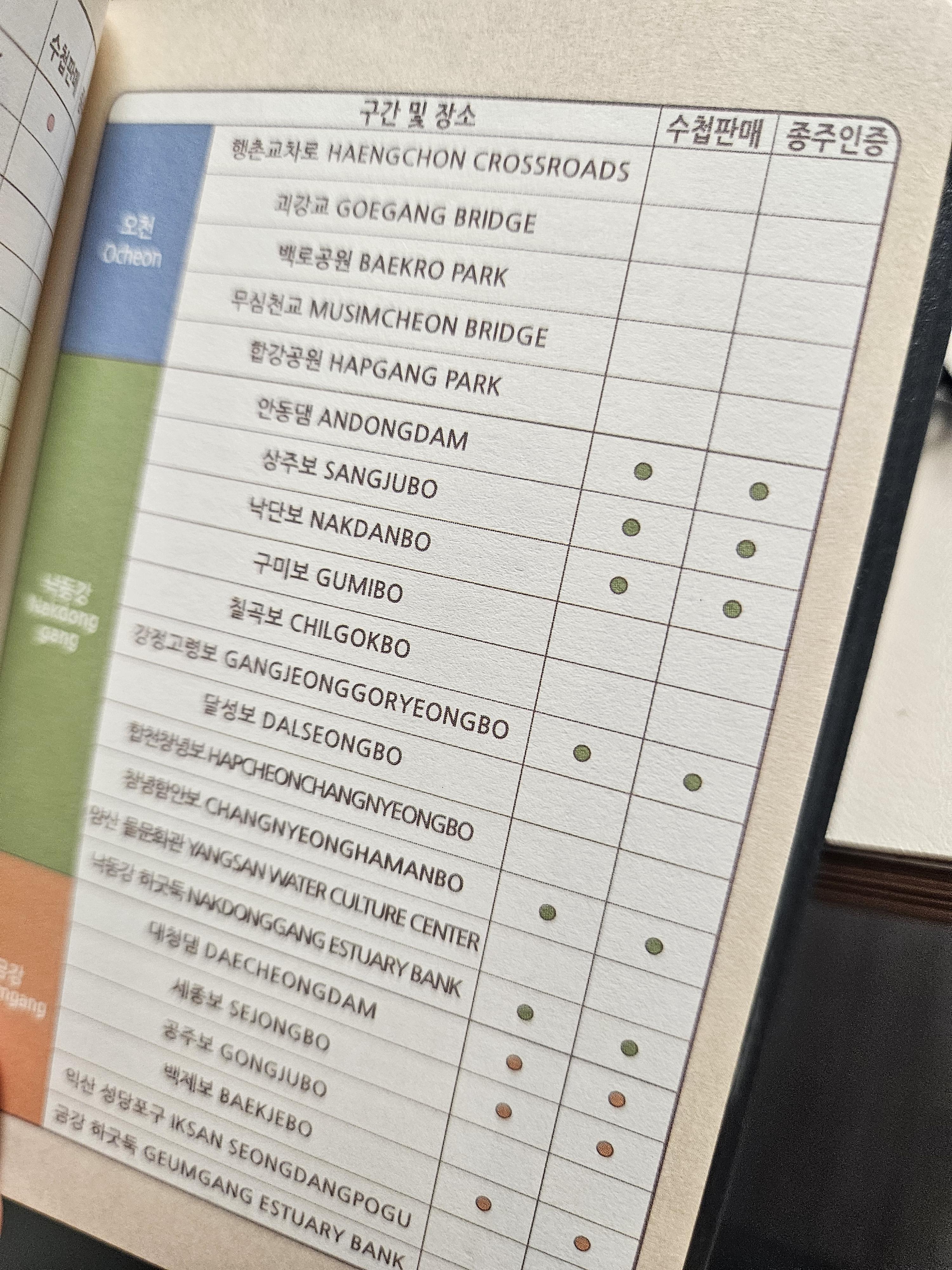 온라인 수첩 판매처는 우리강 이용 도우미 사이트 외 오프라인 수첩 판매와 종주인증 구간 및 장소는 수첩에 안내되어 있으니 참고하면 된다.