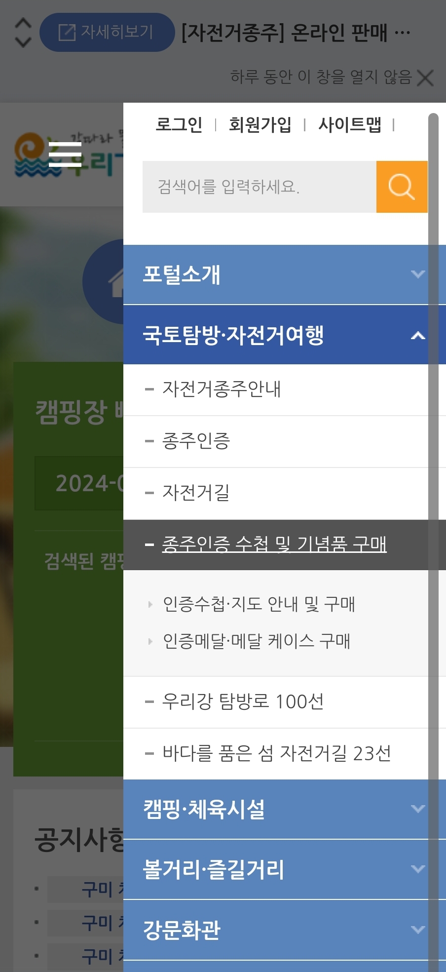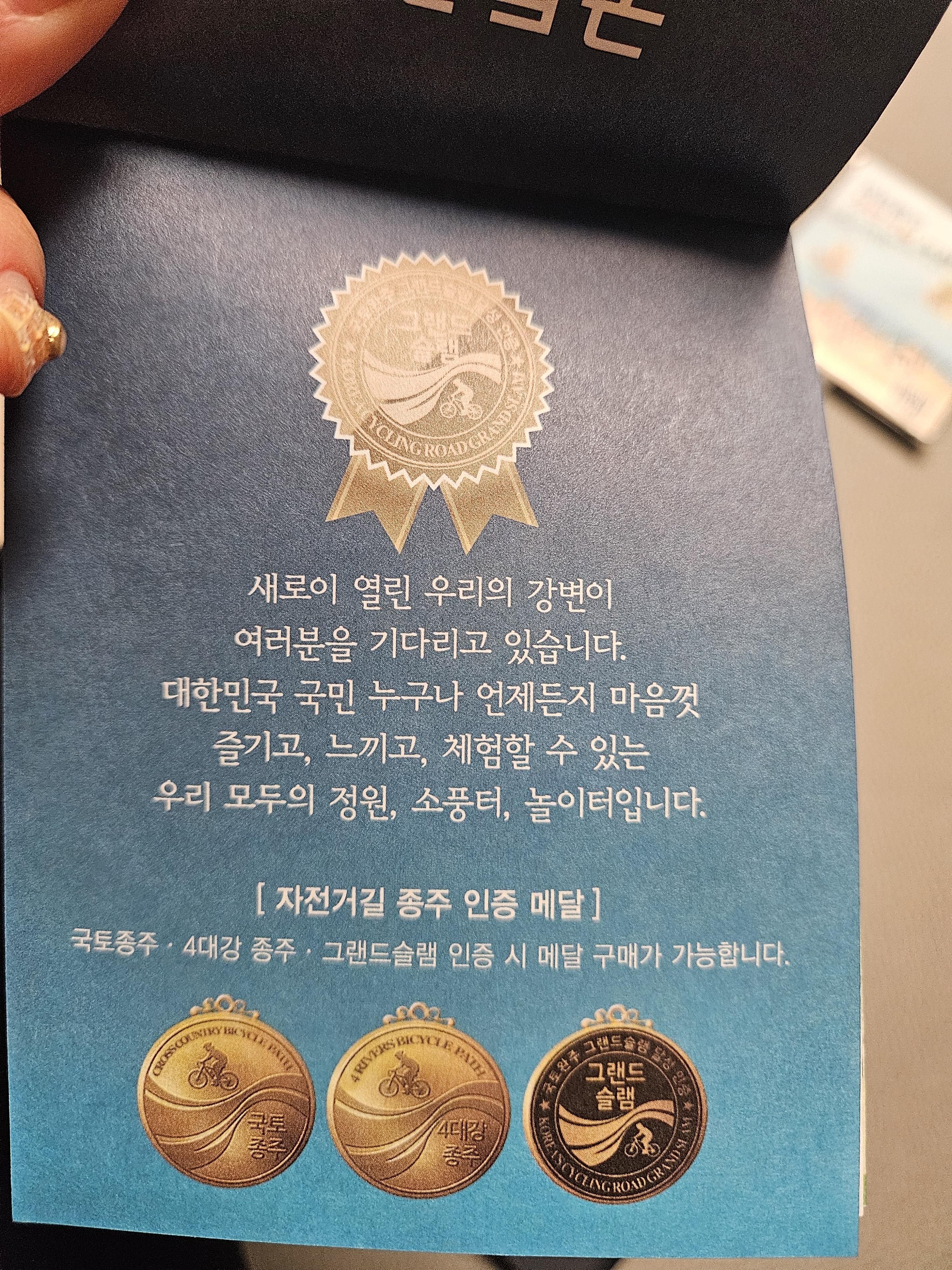 인증 메달의 경우 우선 4대강 종주, 국토종주, 그랜드 슬램 인증이 완료돼야 구매가능하니 우선 인증 수첩 구매 후 하나씩 인증하는 것을 목표로 해야 함.