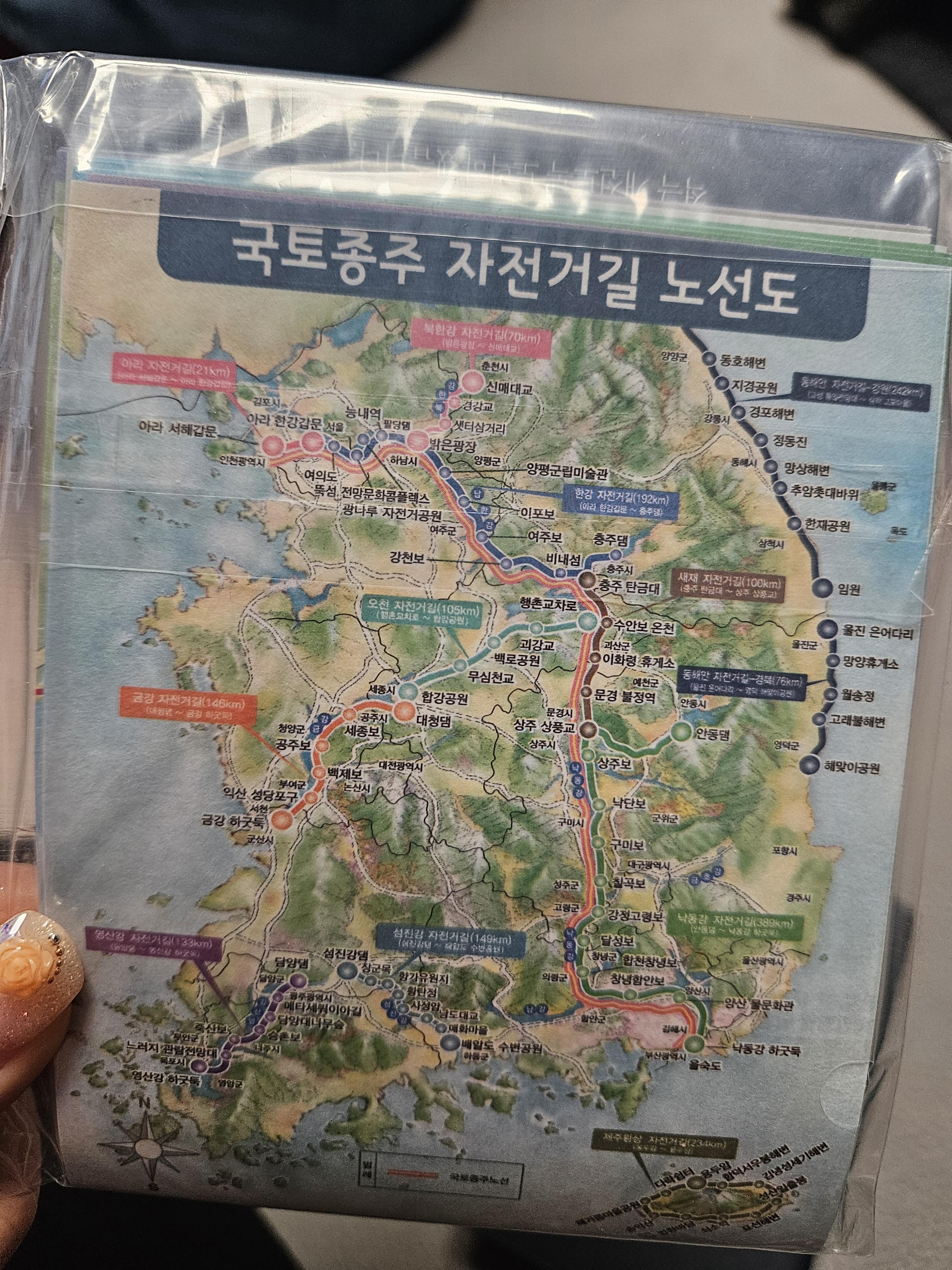 국토 종주 자전거길 노선도 보니 엄두가 안 나면서도 같이 자전거 타고 인증할 생각에 설렌다.