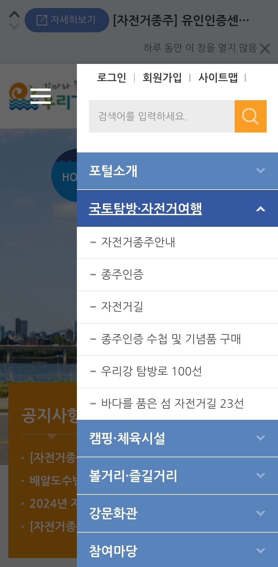 하기 우리강 이용 도우미 홈페이지 접속 후