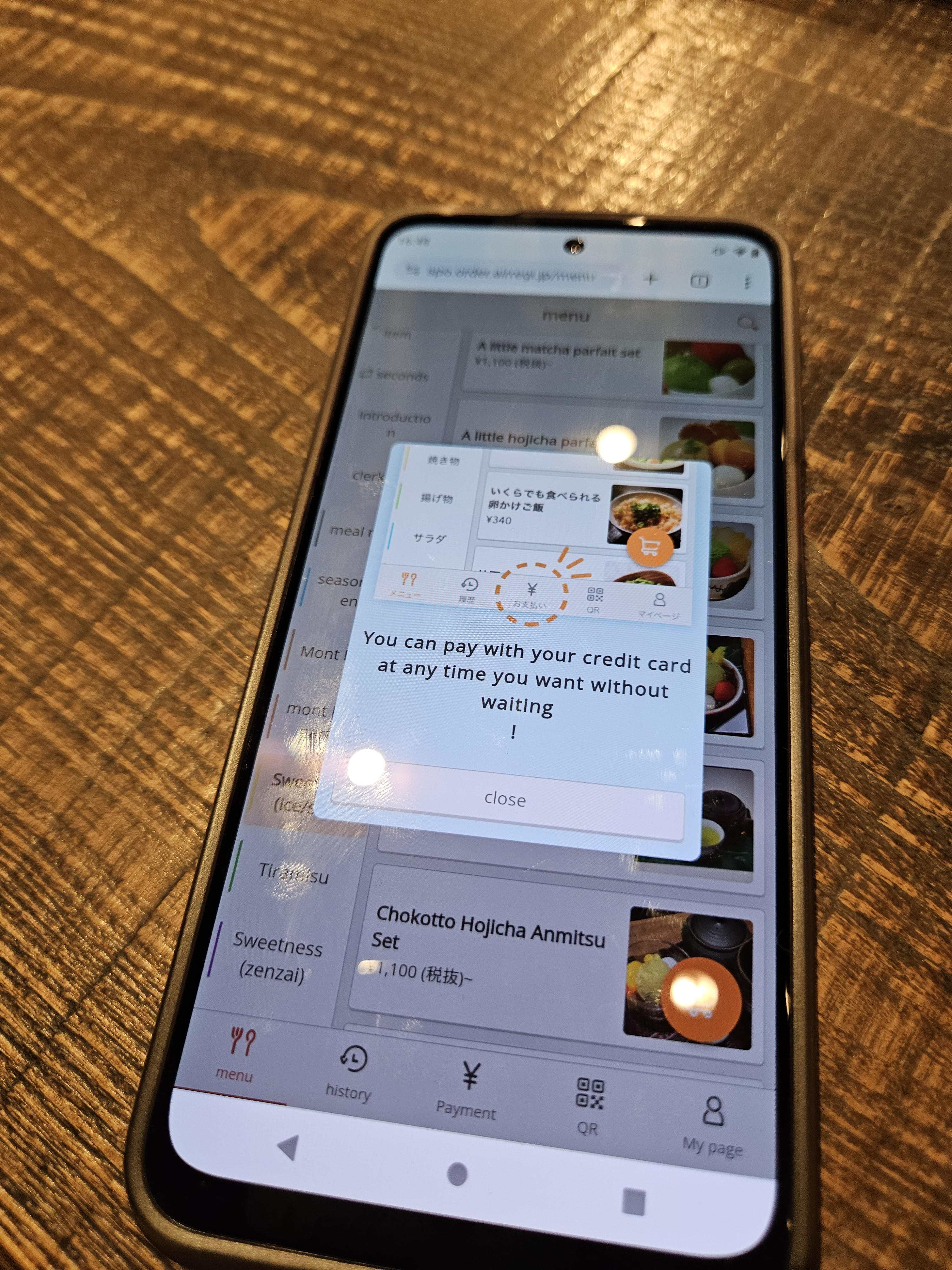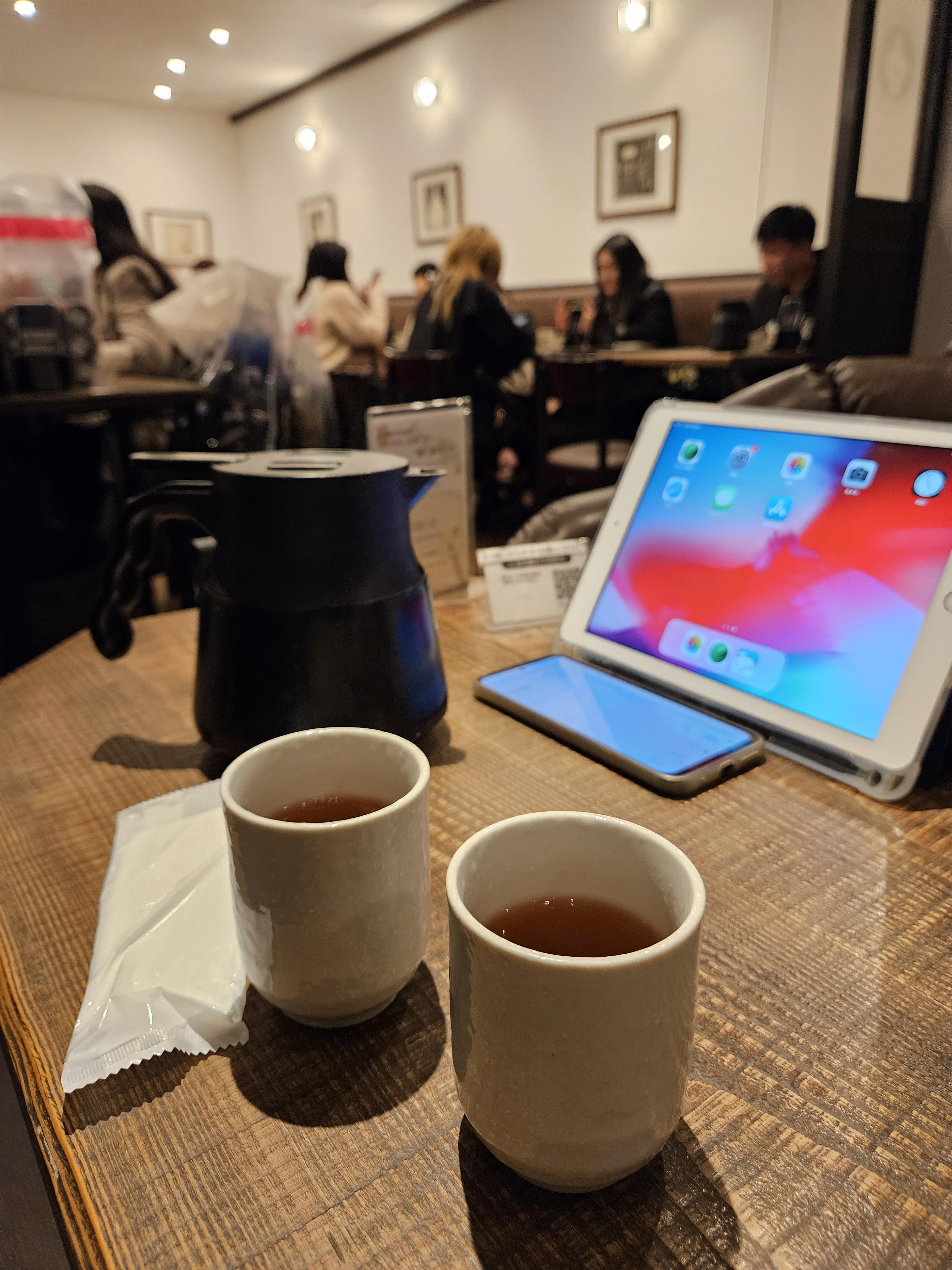 태블릿 메뉴를 주고 주문은 카페의 스마트폰으로 주문하는 시스템.