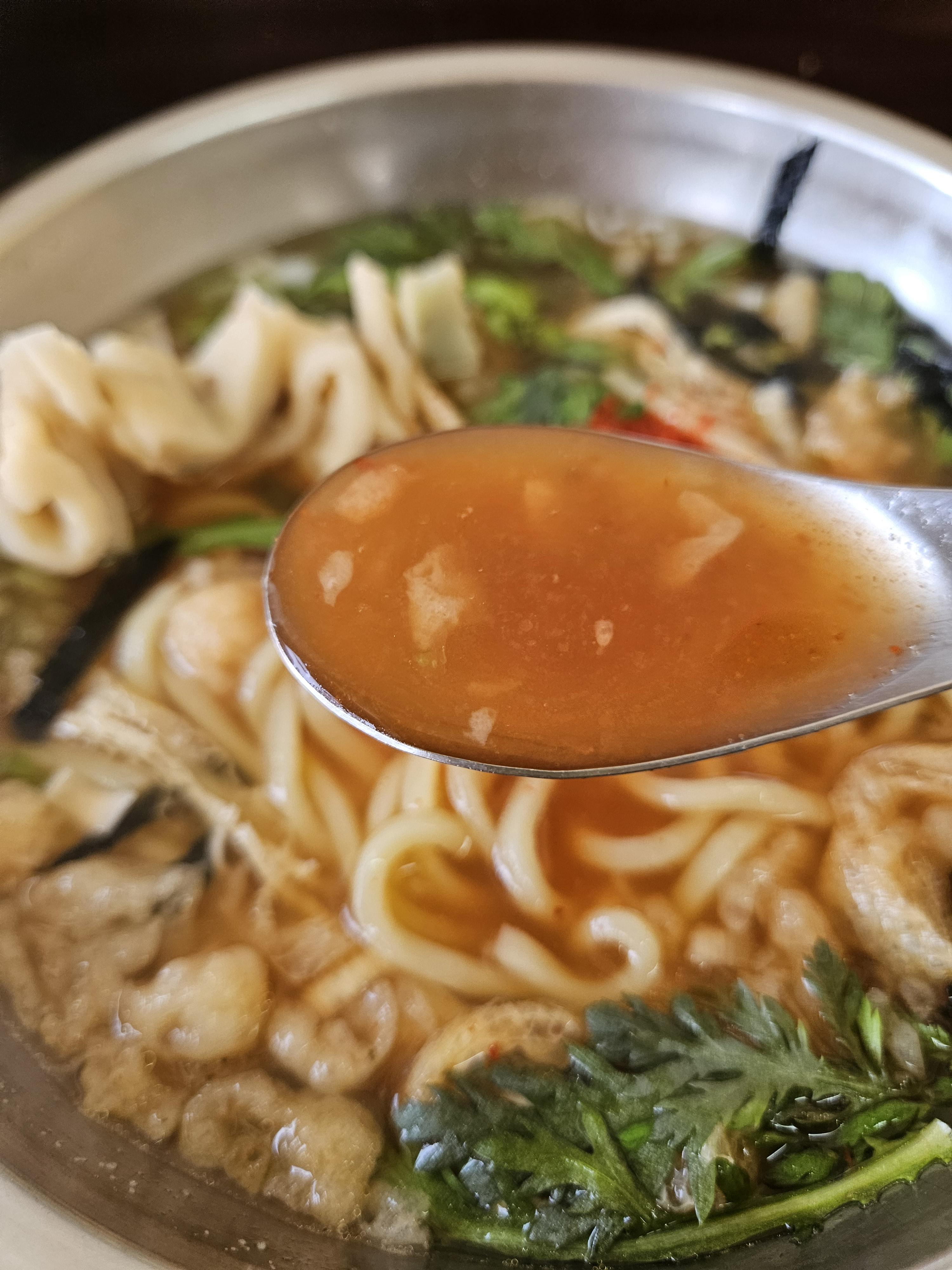 어릴 때 한강에서 사 먹던 우동맛이 떠오르는 추억의 맛. 육수를 직접 내서 사용하시는 것 같고 다대기 양념장이 좀 들어있어 풀면 국물이 매콤한 색으로 변한다.